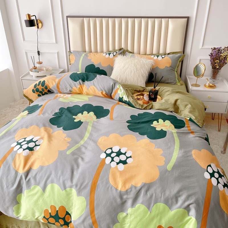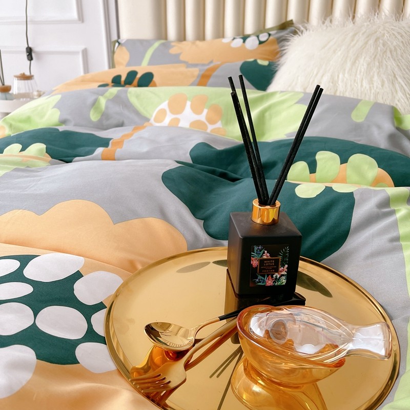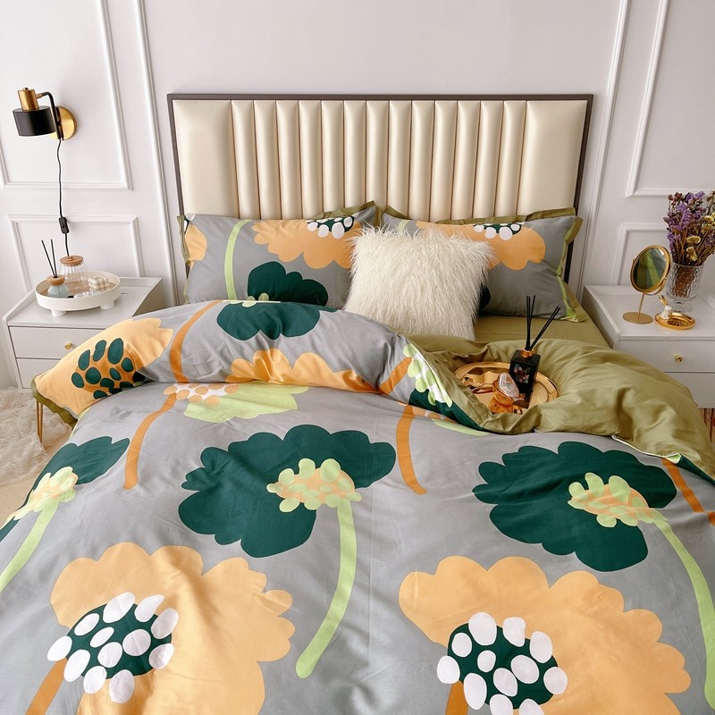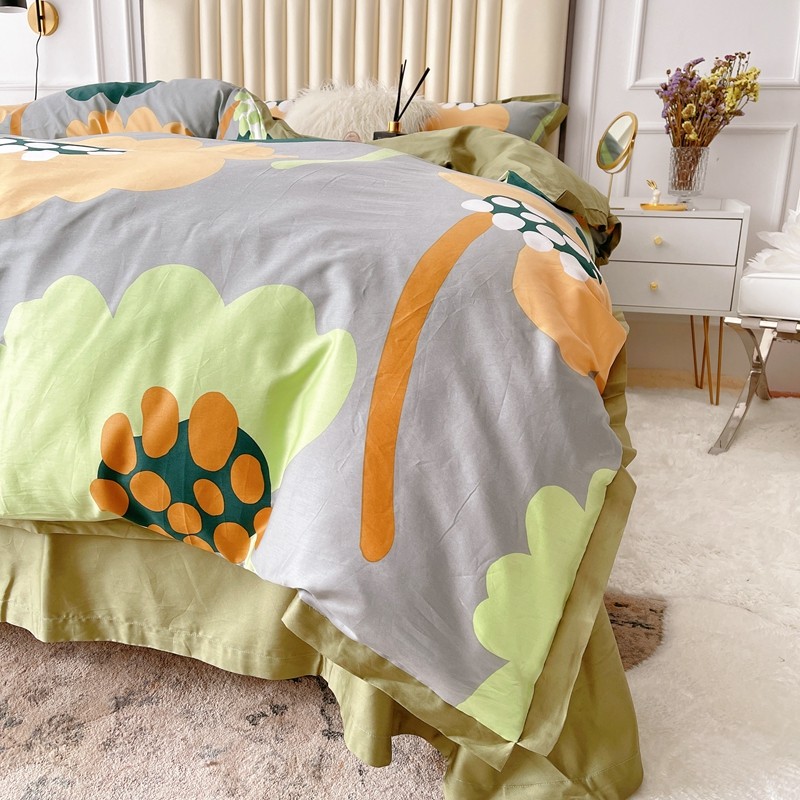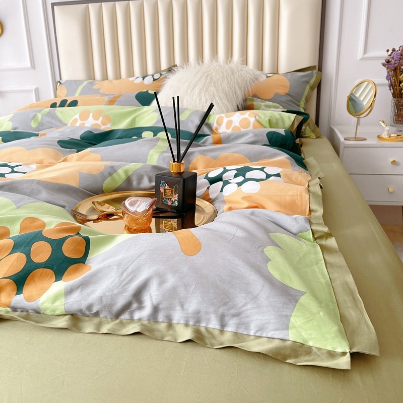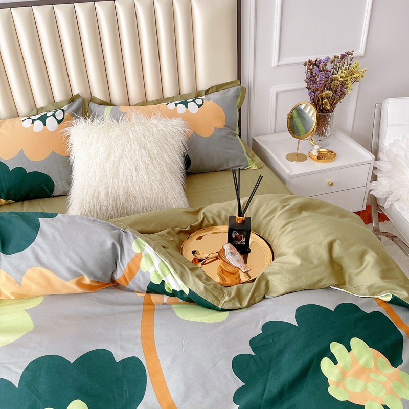 蘭菲2023新款60支贡缎长绒棉印花美式花卉四件套梦里花香绿
