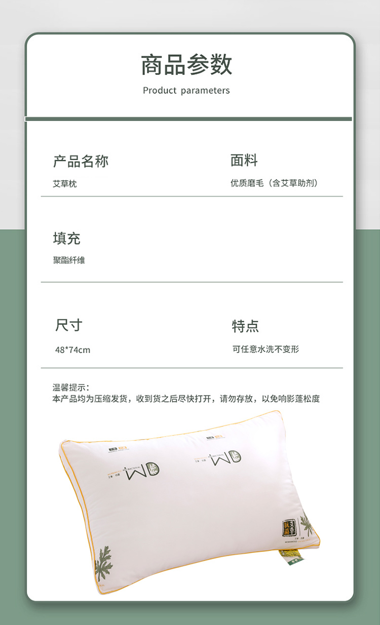 商品名称:皇冠之家 2021新款艾草抑菌枕芯黄色边