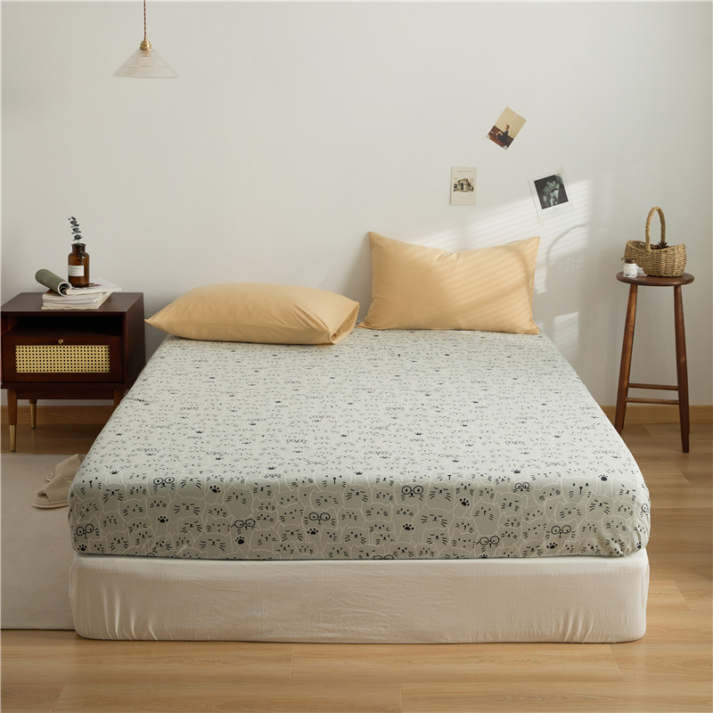 原研家居 新款kinfolk原研针织棉印花 单床笠 猫咪绿