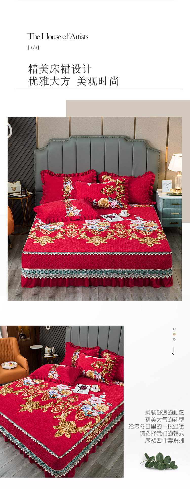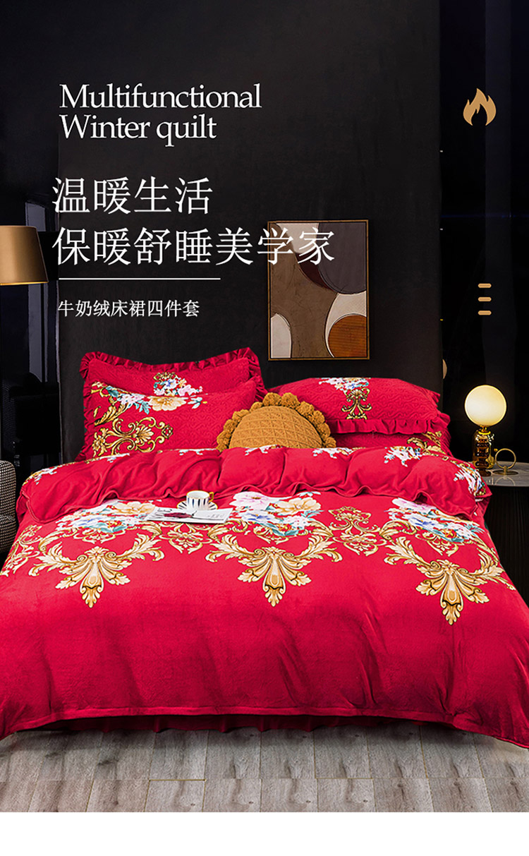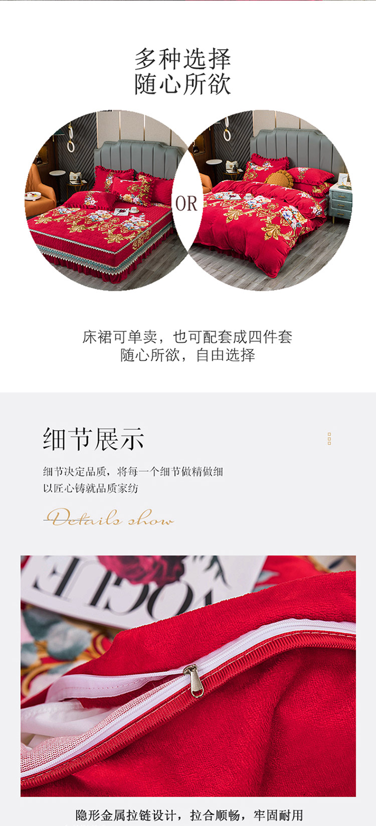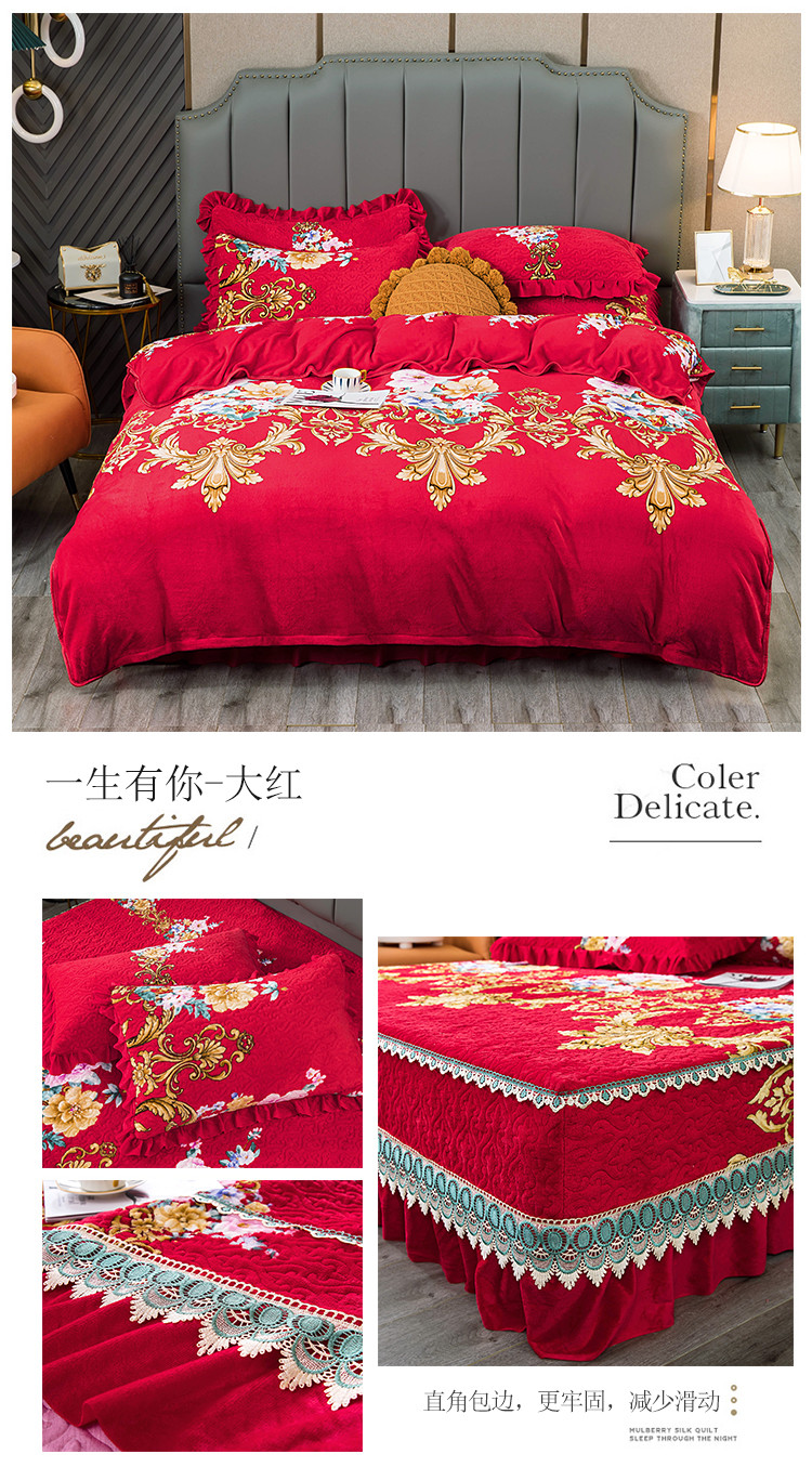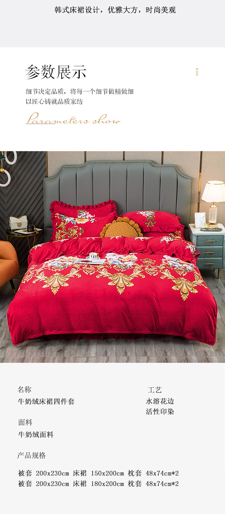 当前位置: 91家纺网 > 商品网购 > 床品套件 > 四件套 > 牛奶绒四件套 > 冬然 牛奶绒夹棉床裙四件套单床裙单被套枕套 一生有你大红