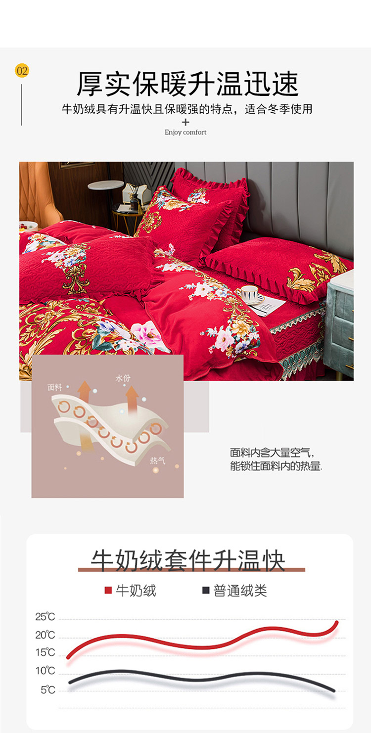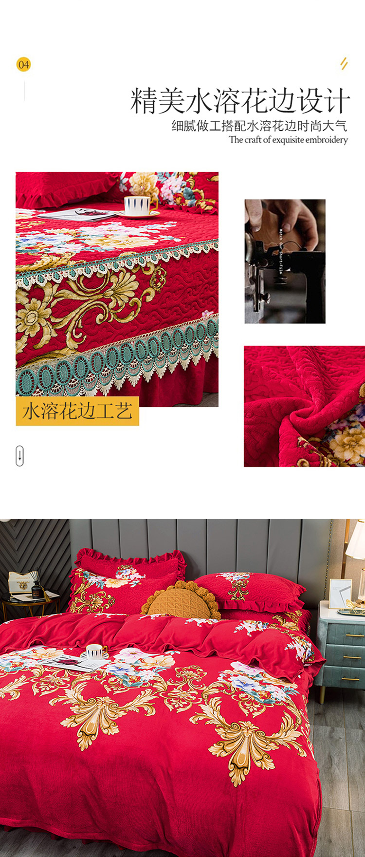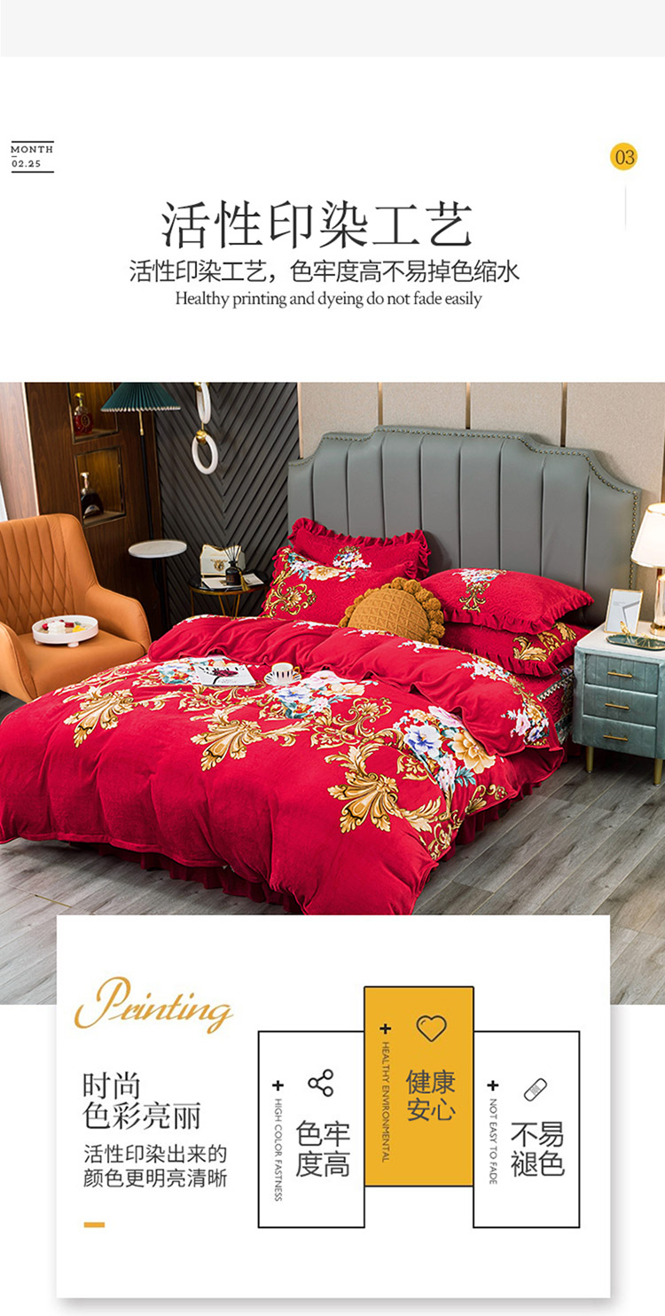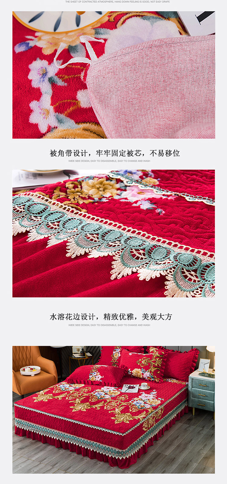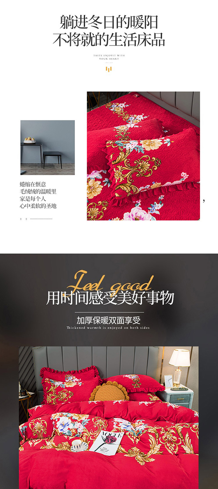 当前位置: 91家纺网 > 商品网购 > 床品套件 > 四件套 > 牛奶绒四件套 > 冬然 牛奶绒夹棉床裙四件套单床裙单被套枕套 一生有你大红