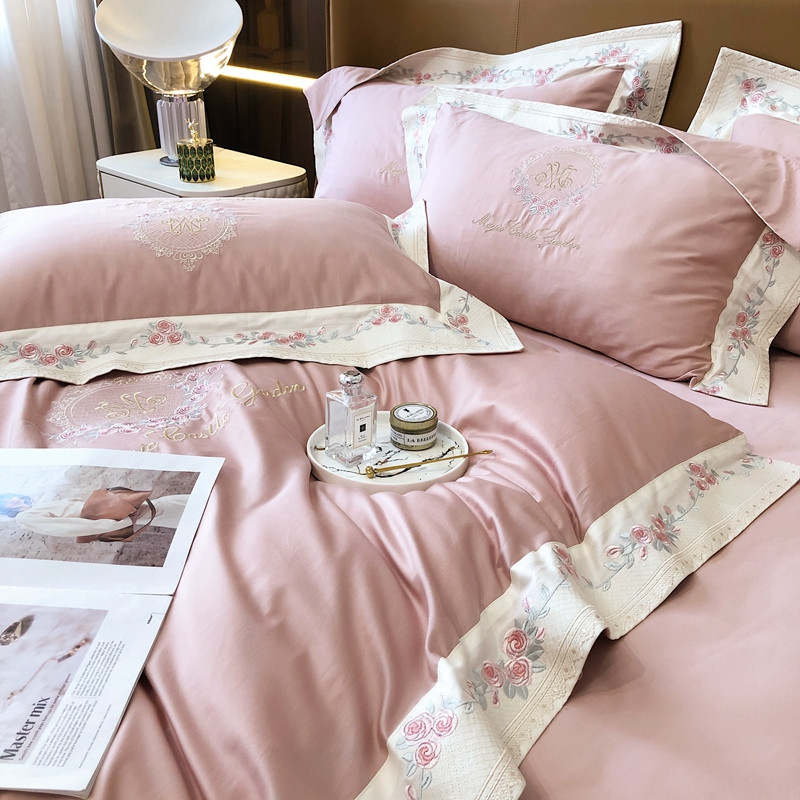 商品名称:馨蕊 2021秋冬新品100支澳棉四件套高定系列 梦露 梦露-豆蔻粉