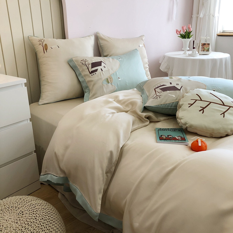 (总)馨蕊家居 2025新款80SLF奥地利兰精天丝四件套-知否系列,知否-氧气绿,知否-月光白