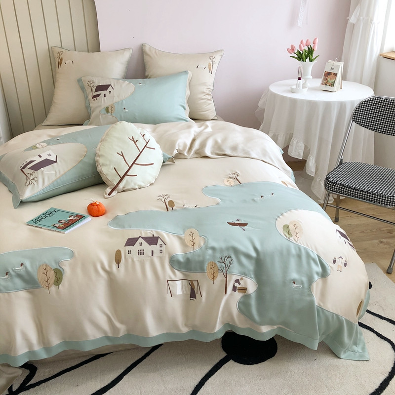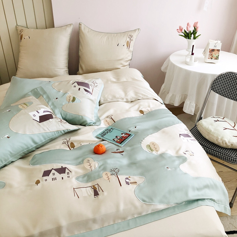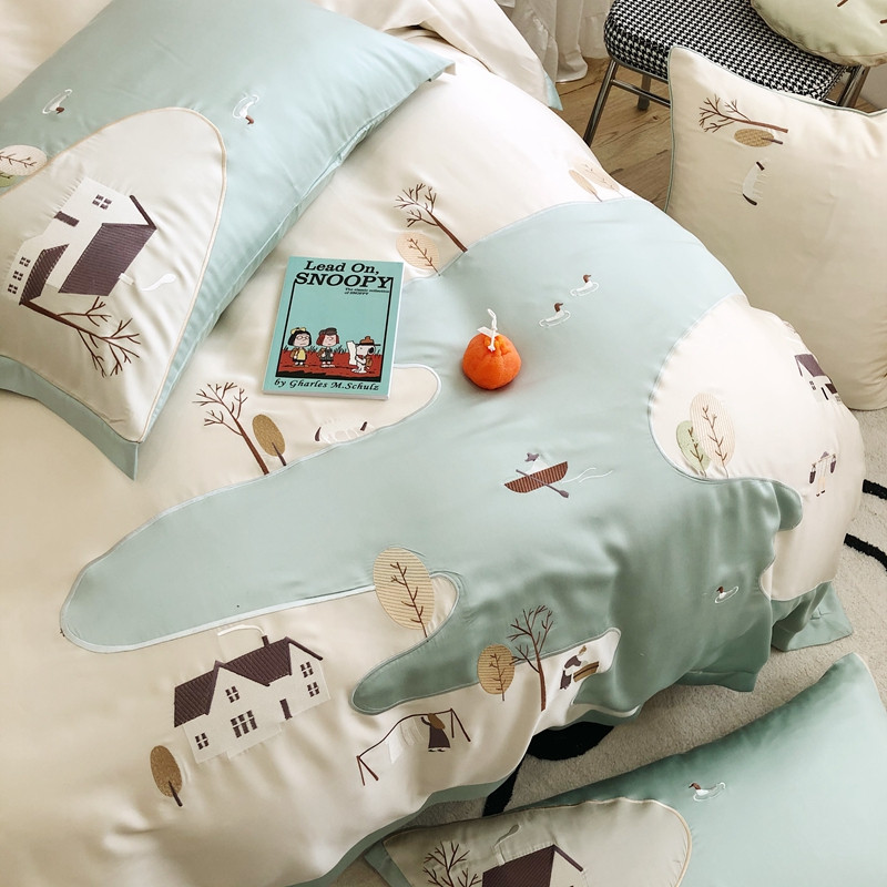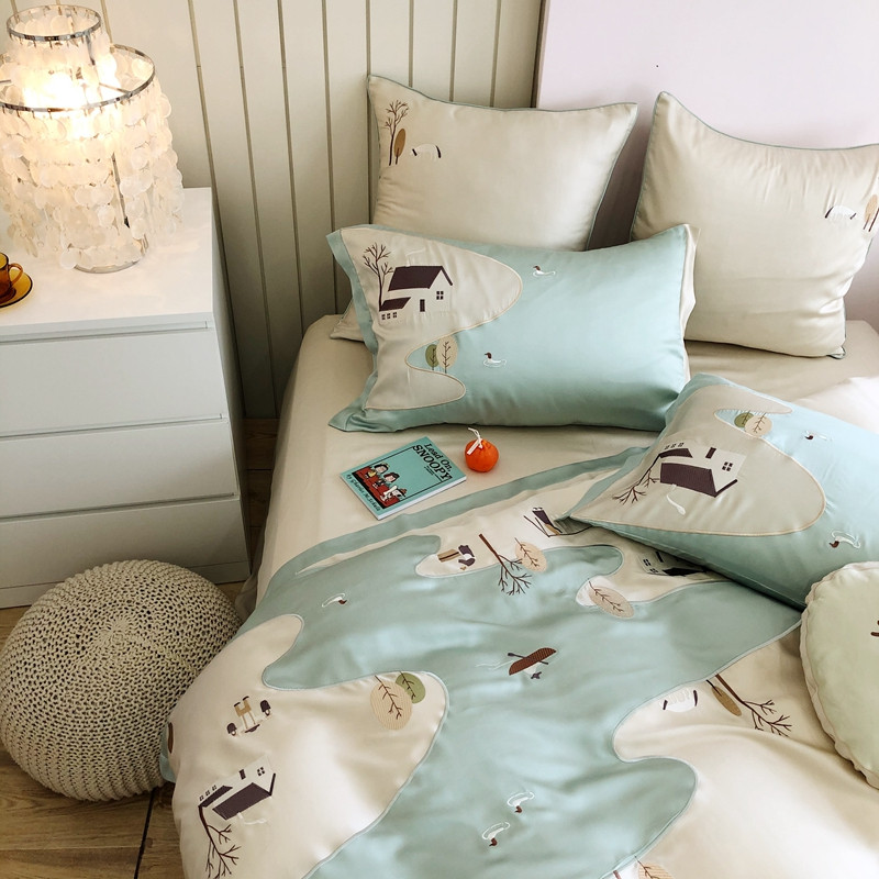 商品名称:(总)馨蕊2021秋冬新品100支澳棉四件套高定系列山村河流