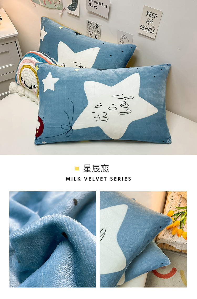(总)芃成家纺 2021新款牛奶绒印花单枕套一对