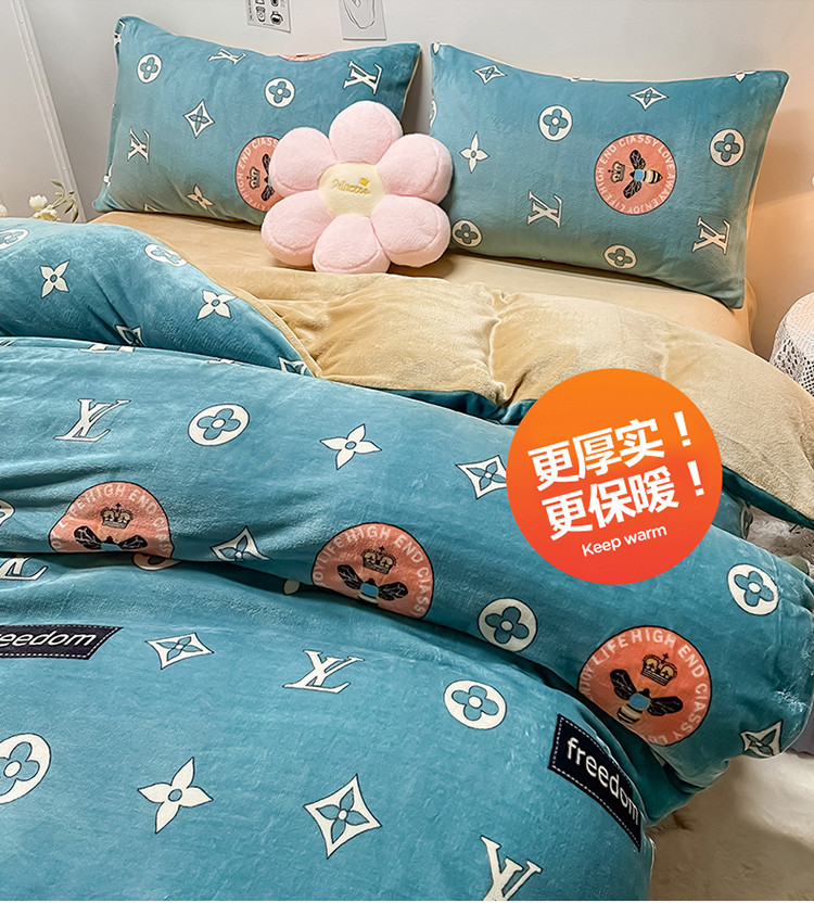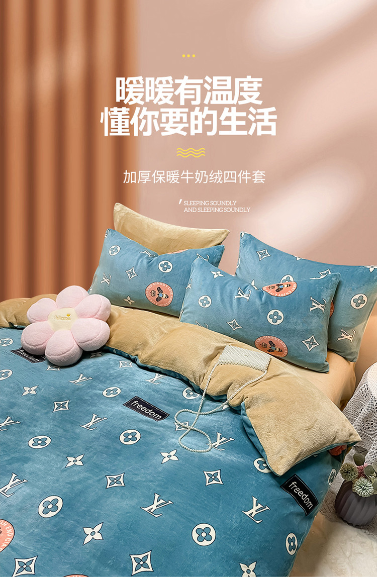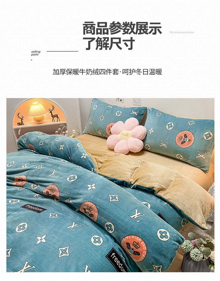 商品名称:芃成家纺 2021新款牛奶绒印花四件套 休闲