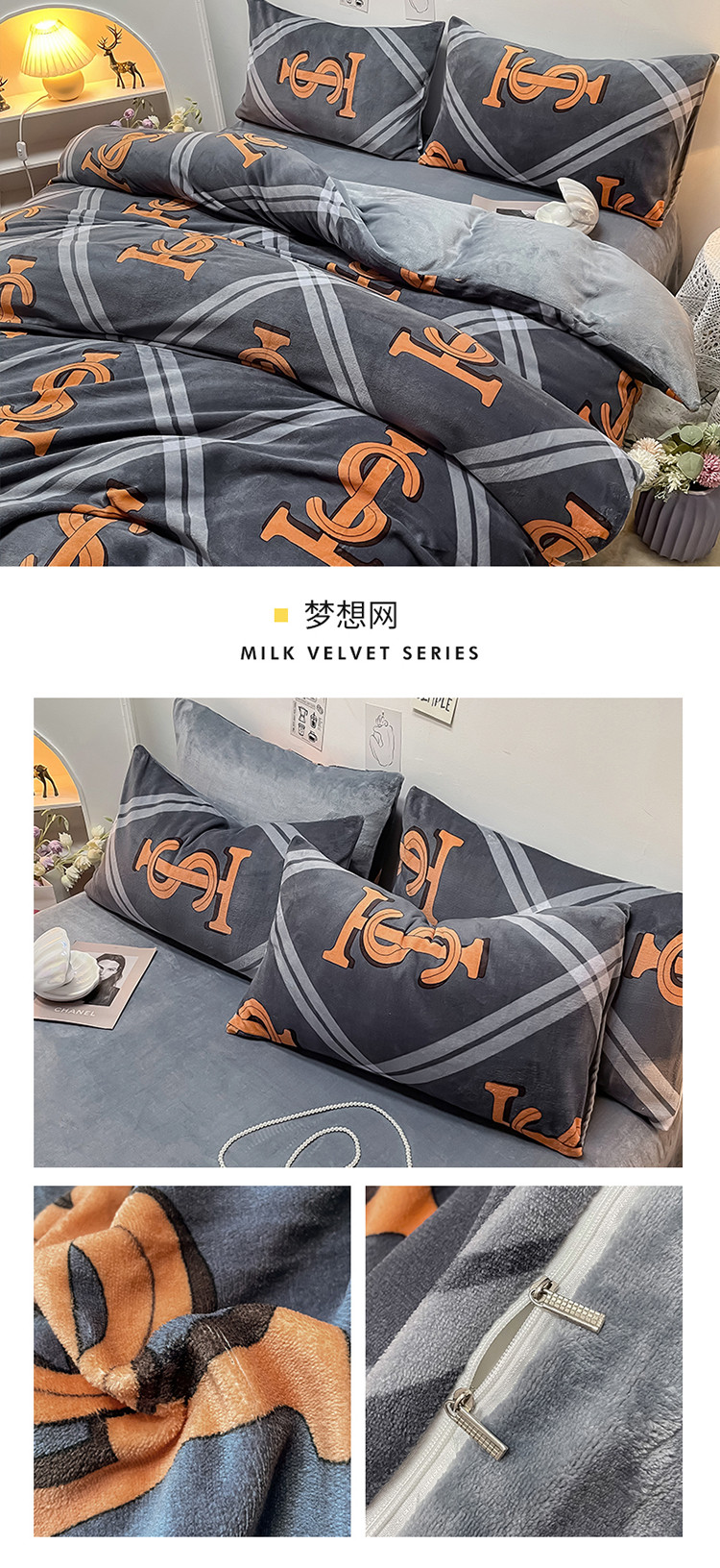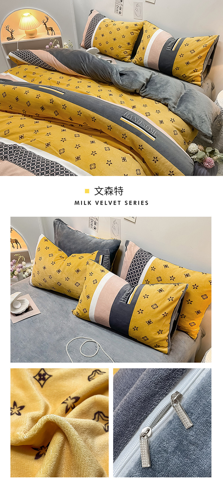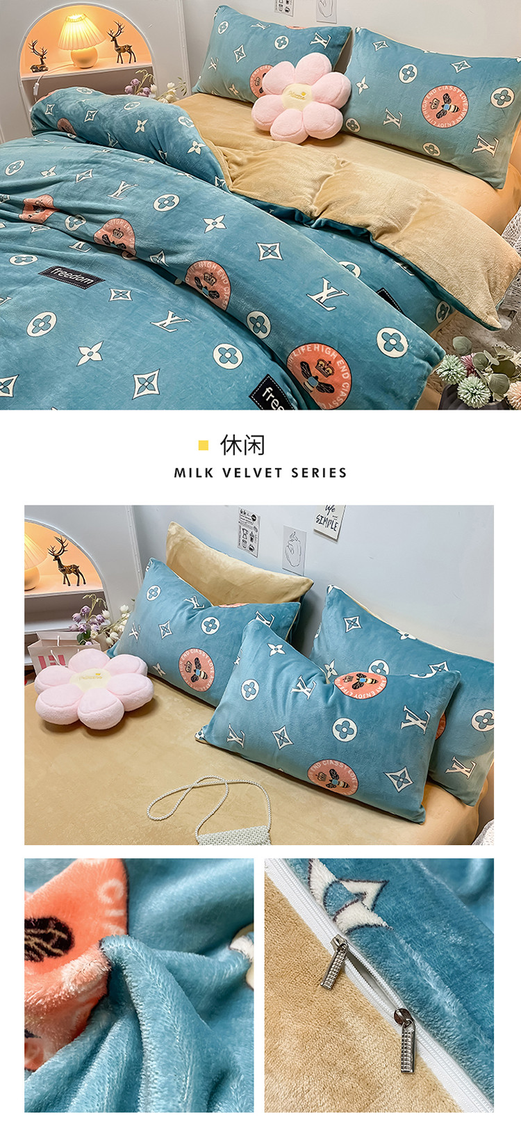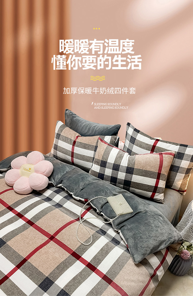 芃成家纺 2021新款牛奶绒印花四件套 宝利格