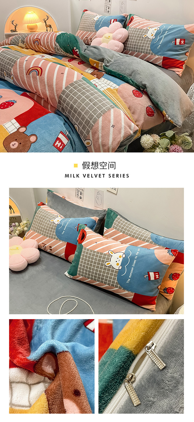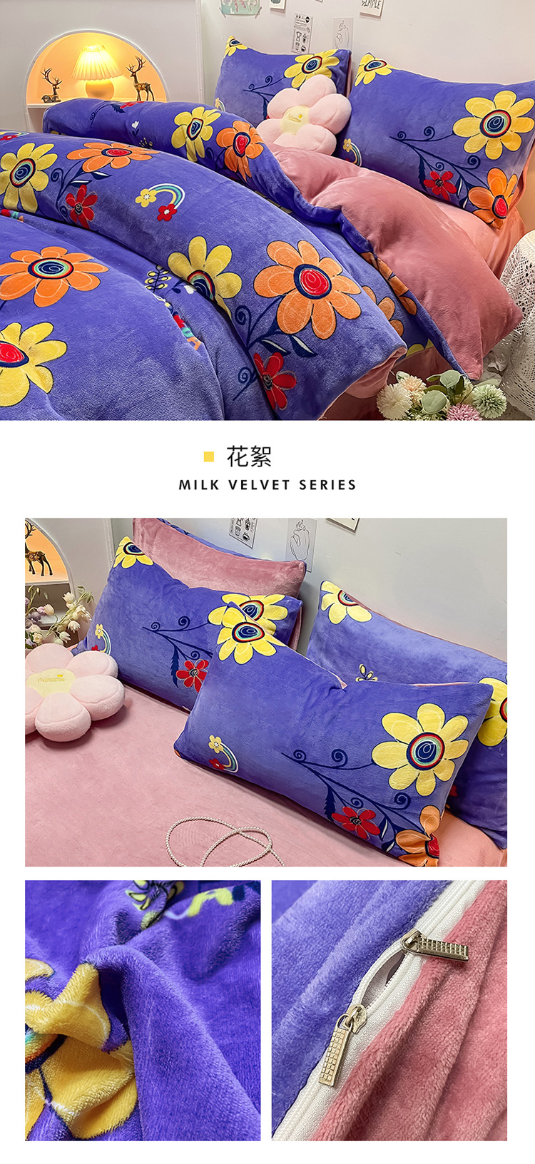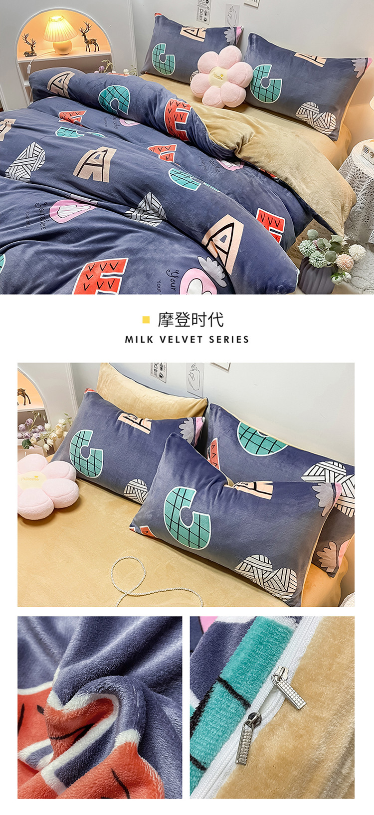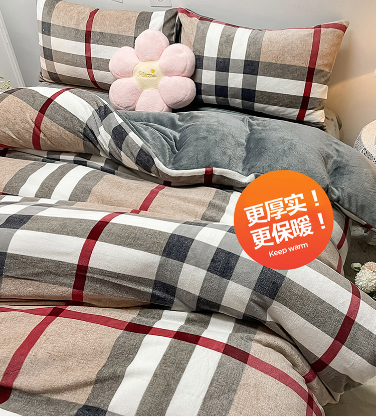 芃成家纺 2021新款牛奶绒印花四件套 宝利格