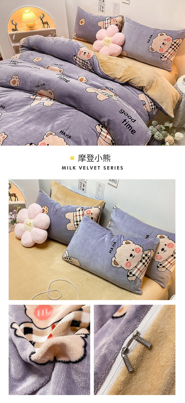 商品名称:芃成家纺 2021新款牛奶绒印花四件套 宝利格