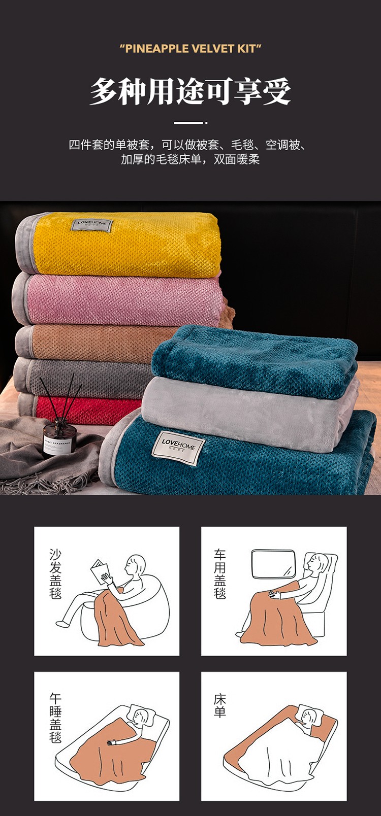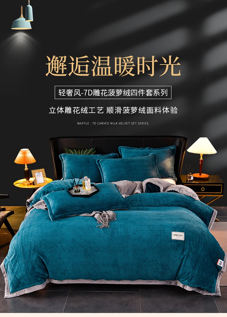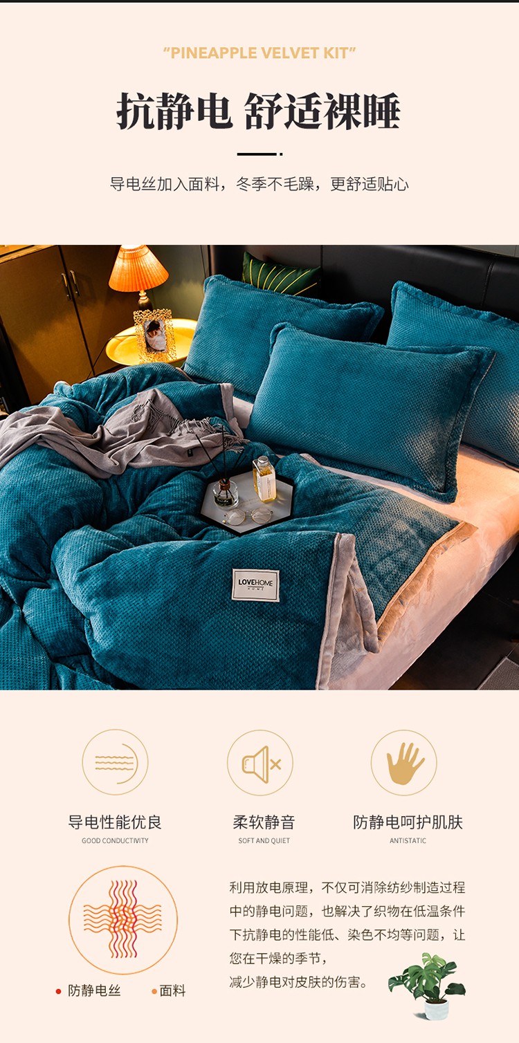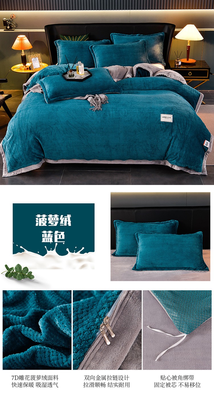 当前位置: 91家纺网 > 商品网购 > 床品套件 > 四件套 > 牛奶绒四件套 > 小牛席业 2021新款菠萝牛奶绒四件套 菠萝绒(蓝色)