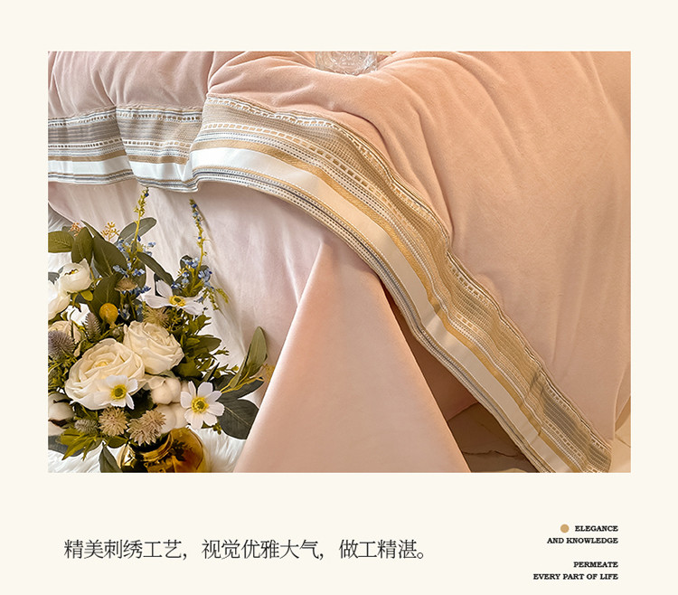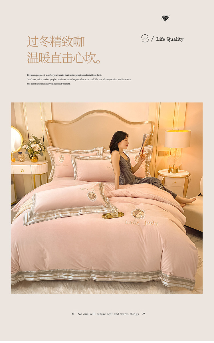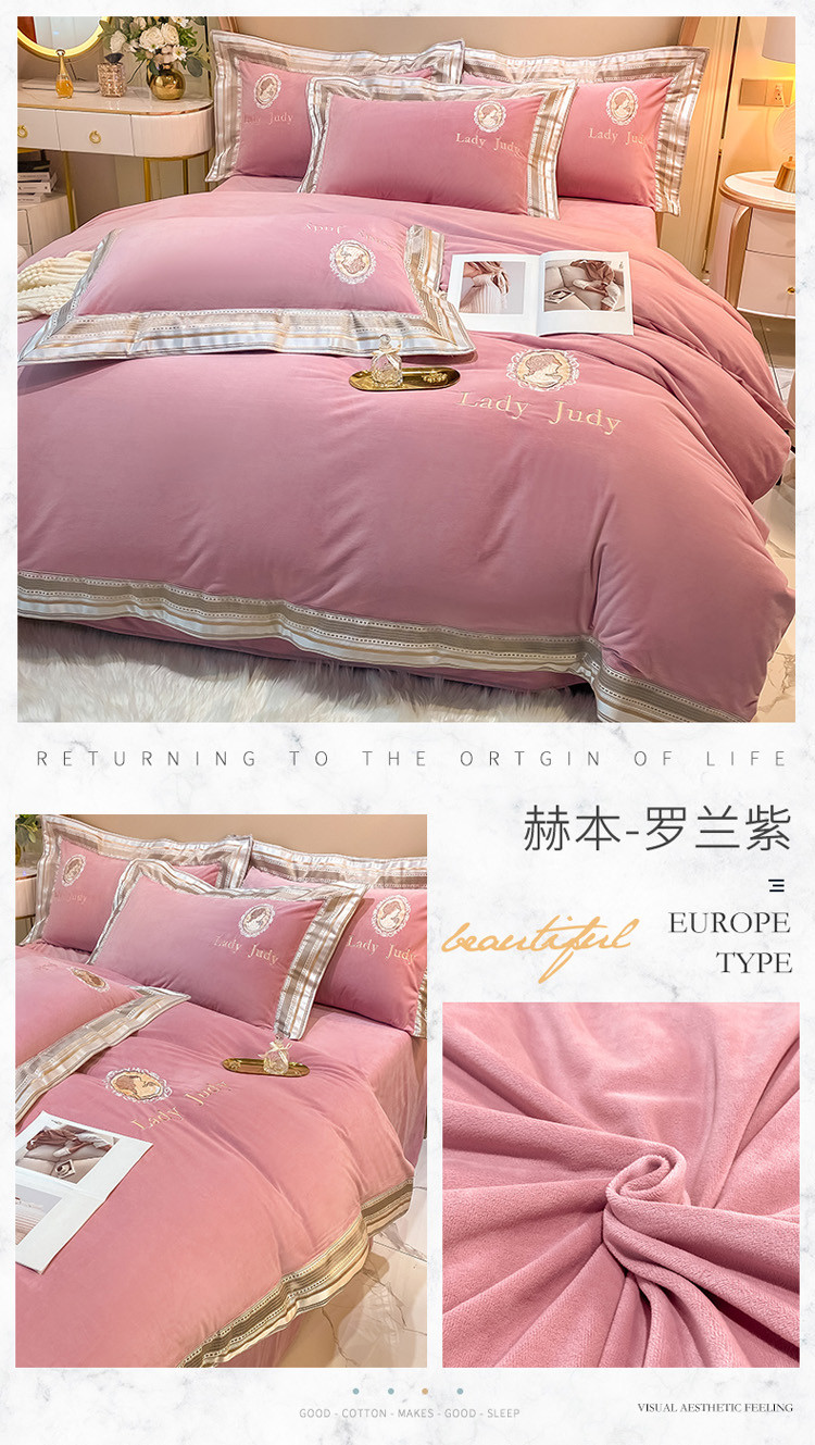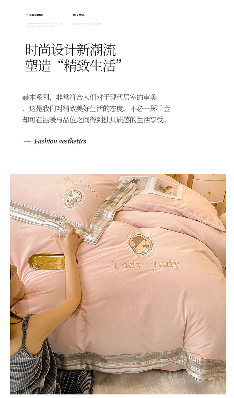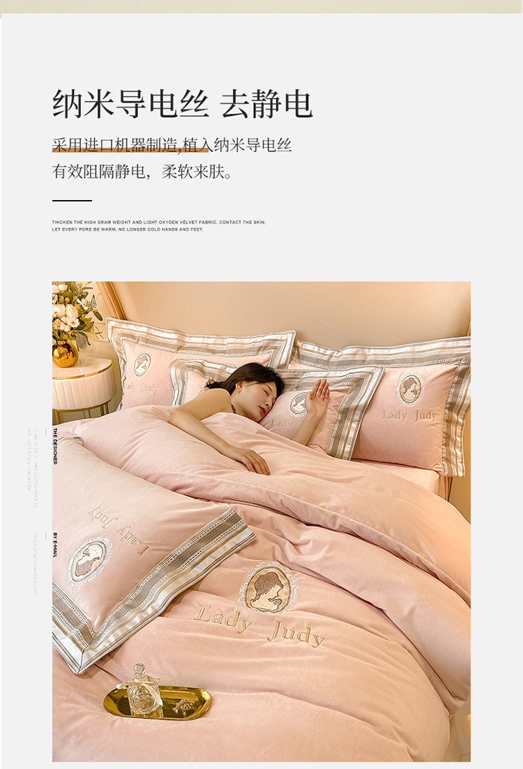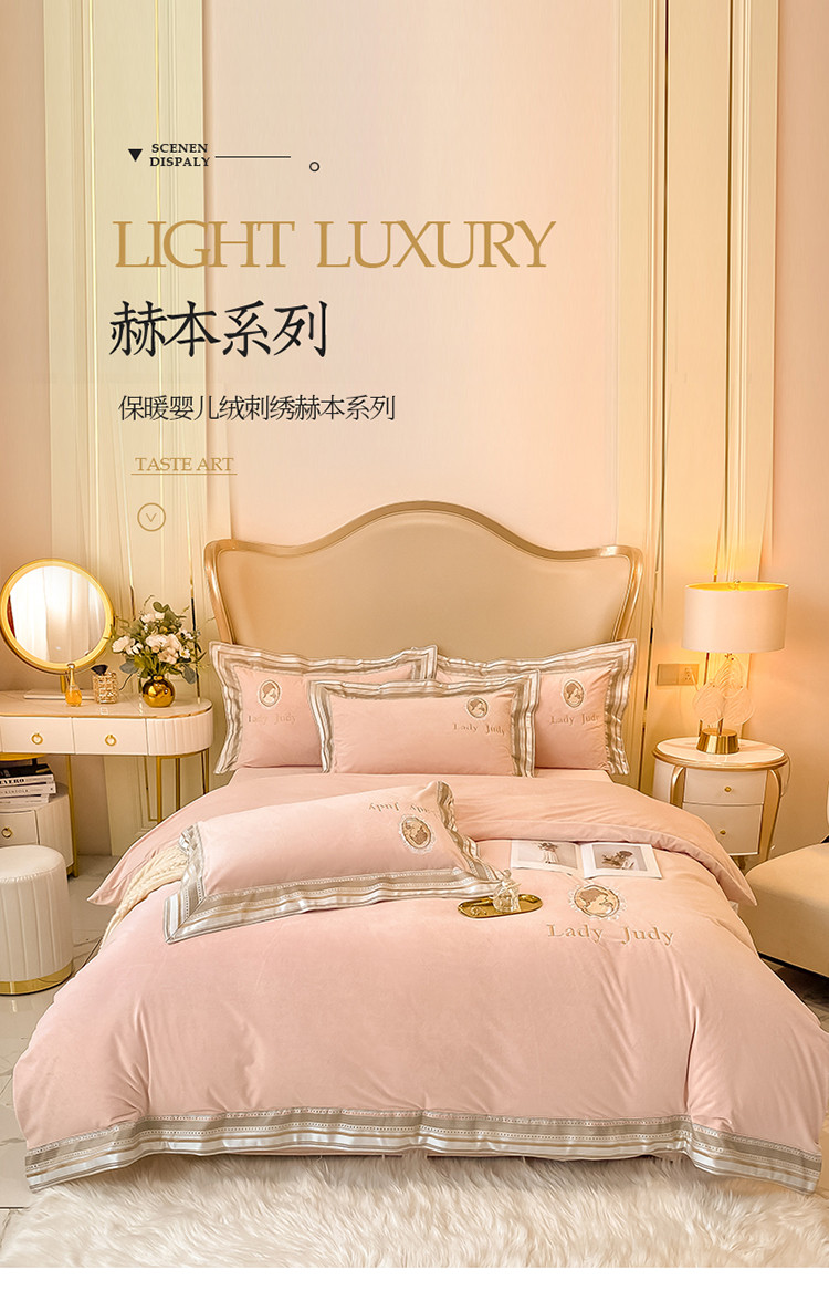 商品名称:蓝米卡夫 2024新款婴儿绒刺绣四件套 赫本-婴儿粉