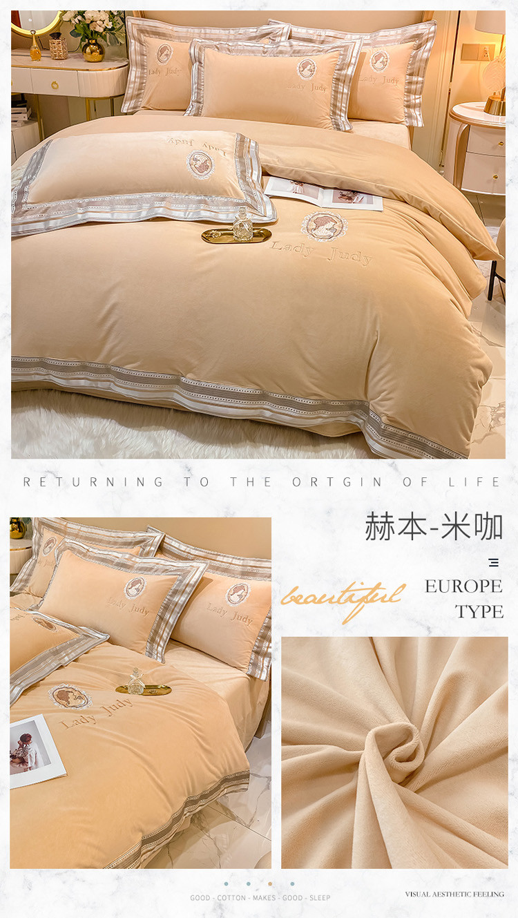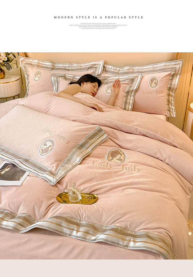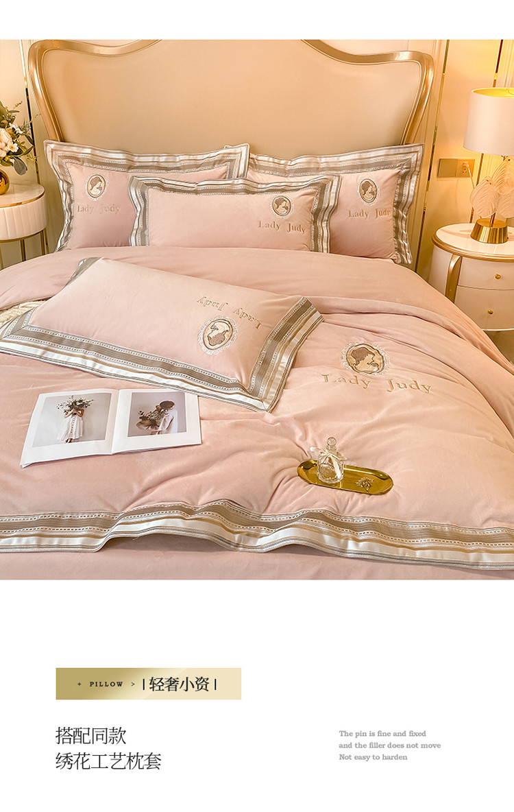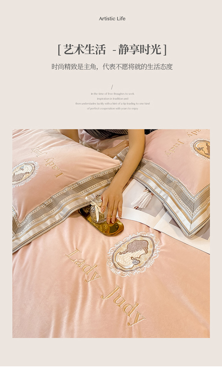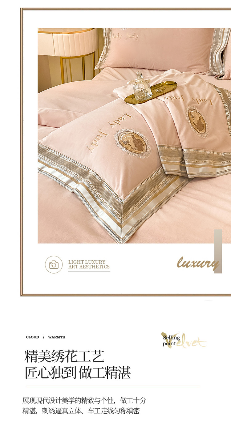 蓝米卡夫 2024新款婴儿绒刺绣四件套 赫本-婴儿粉