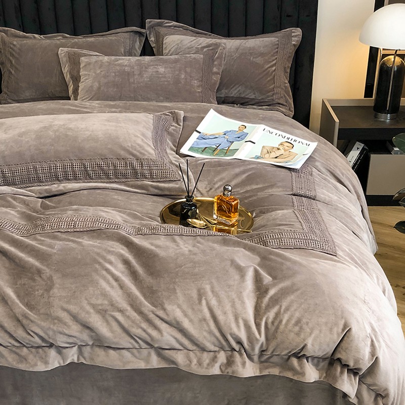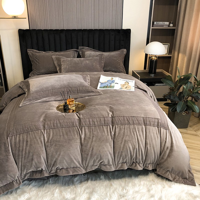 商品名称:时亿家居 2022新款A类婴肤牛奶绒四件套觅系列 觅-咖