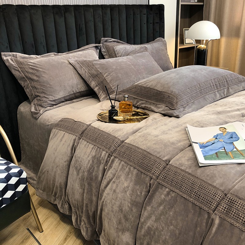 (总)时亿家居 2025新款镂空花边长绒棉纯棉磨毛四件套-海瑟薇,海瑟薇-灰色,海瑟薇-米驼色,海瑟薇-浅草绿,海瑟薇-悠悠紫