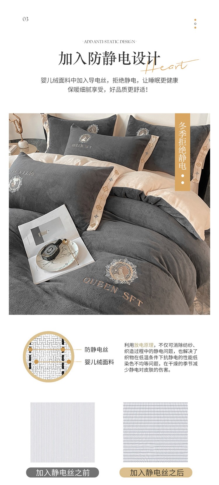 商品名称:索飞特2021新款牛奶绒刺绣工艺款四件套 漫渡莎-魅力灰