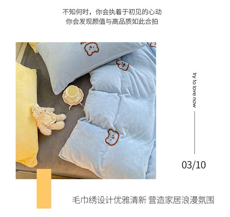 雅居纺 2022新款牛奶绒毛巾绣四件套拍摄风格2 可爱熊-蓝灰