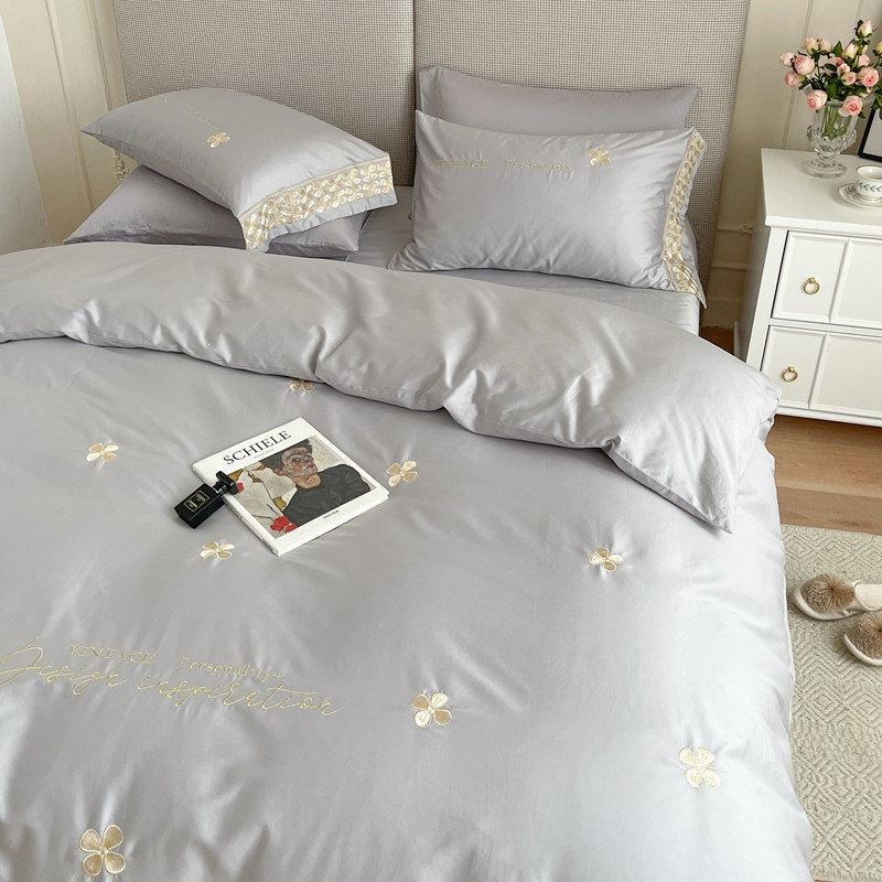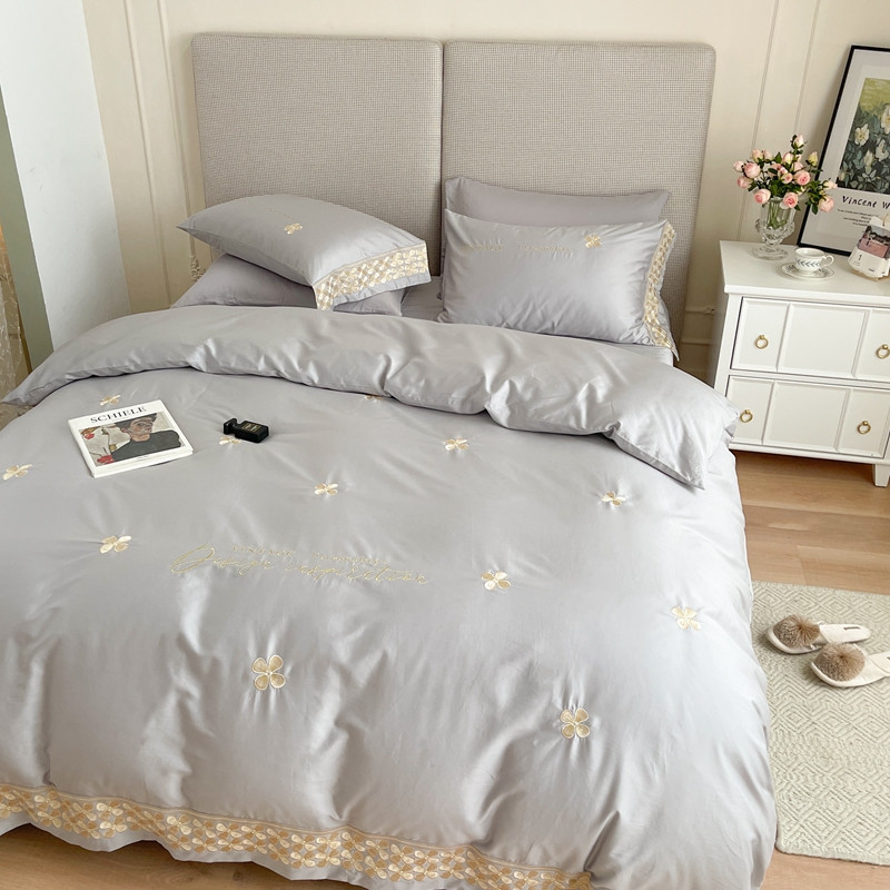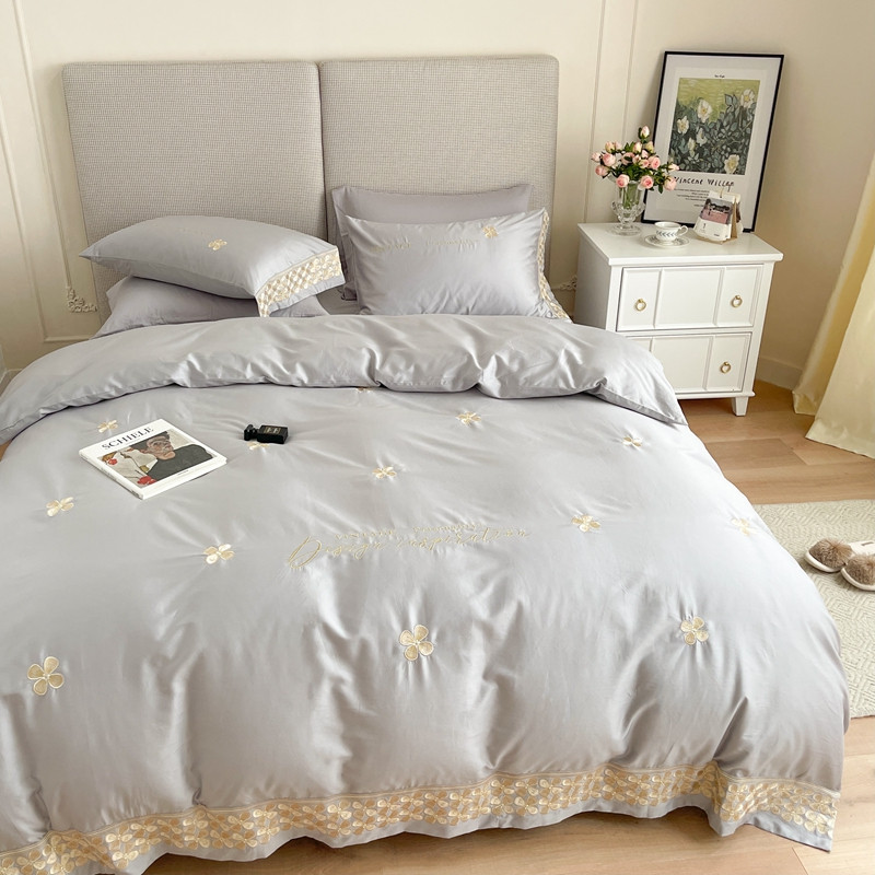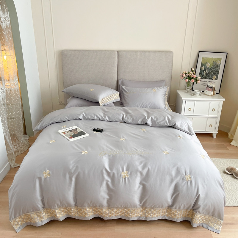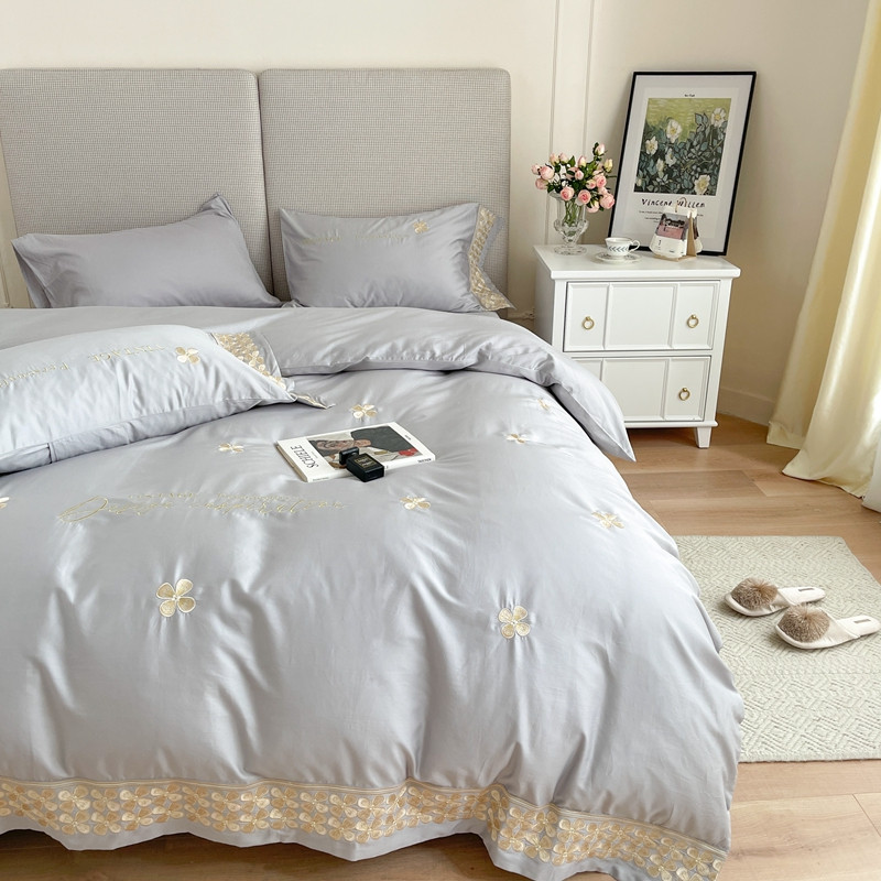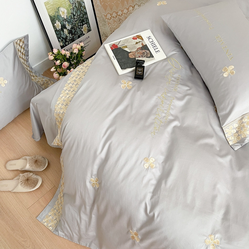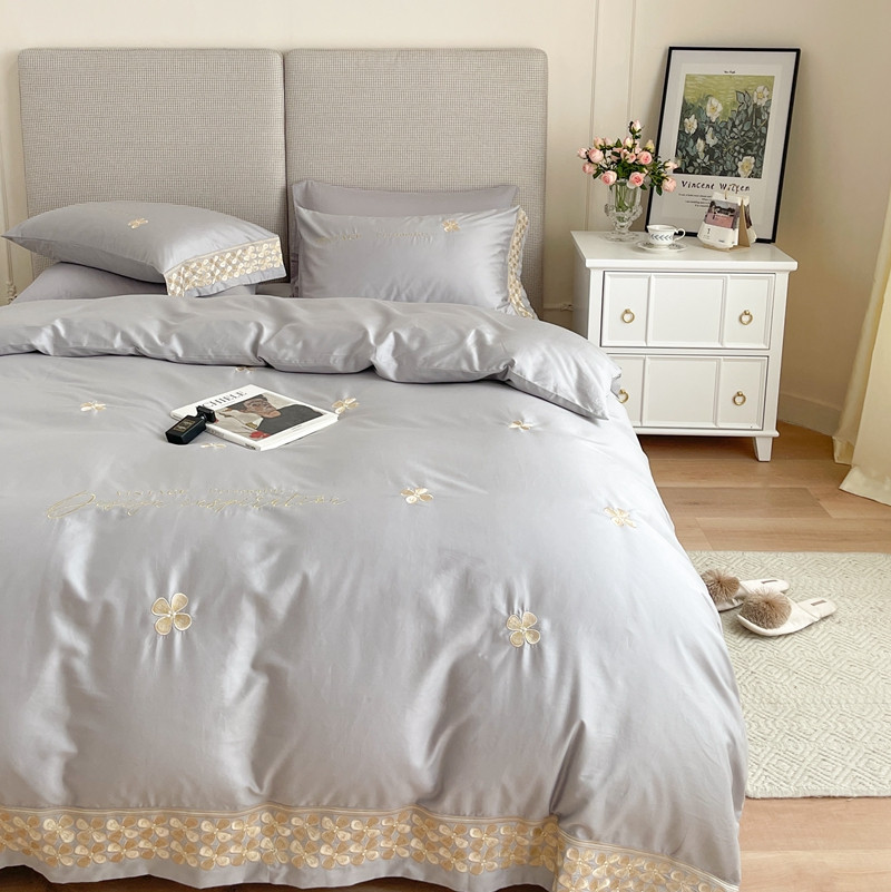 商品名称:柚子 2021新款高端100支澳棉贡缎刺绣四件套 思慕-灰