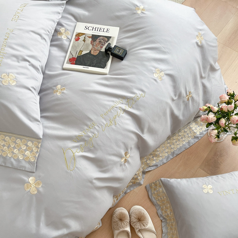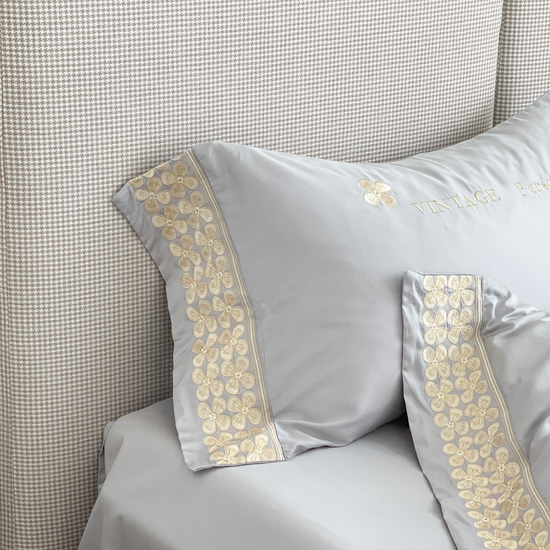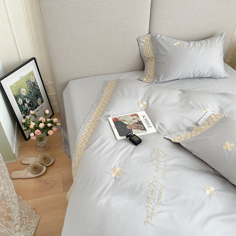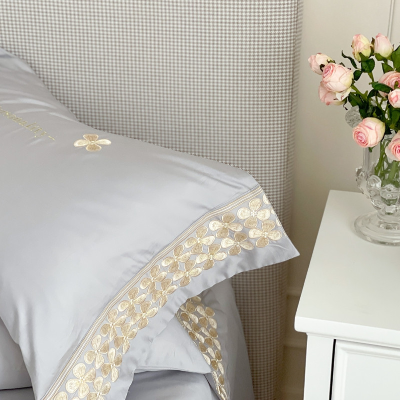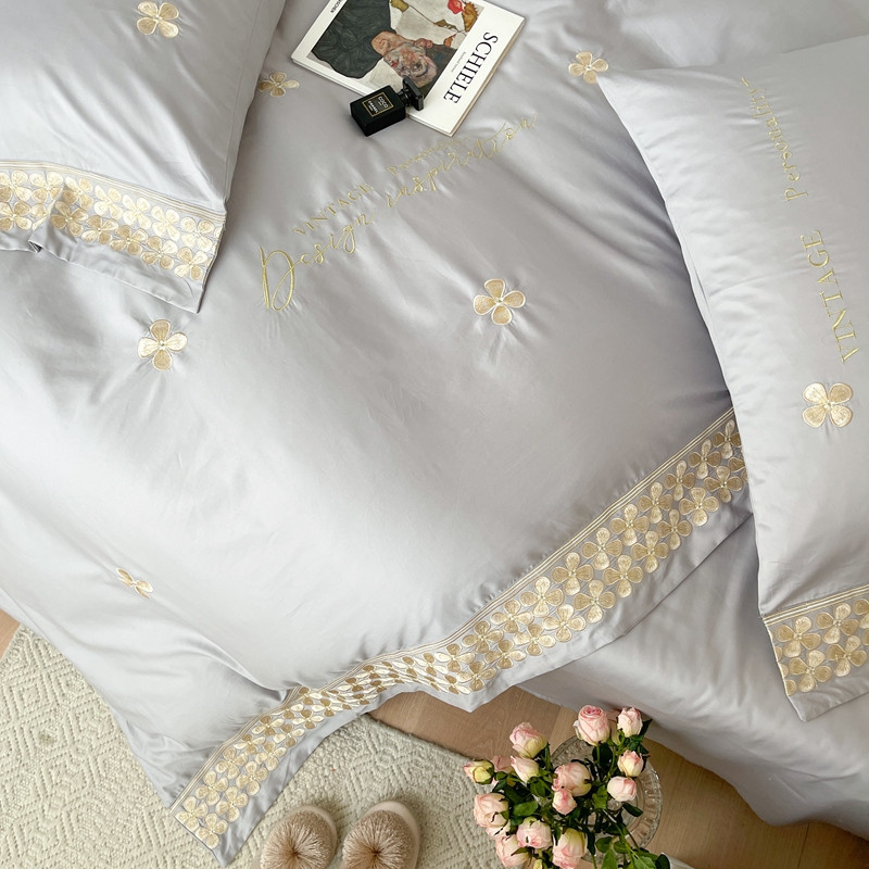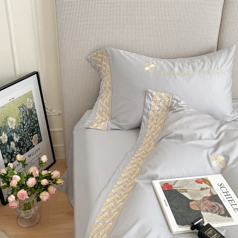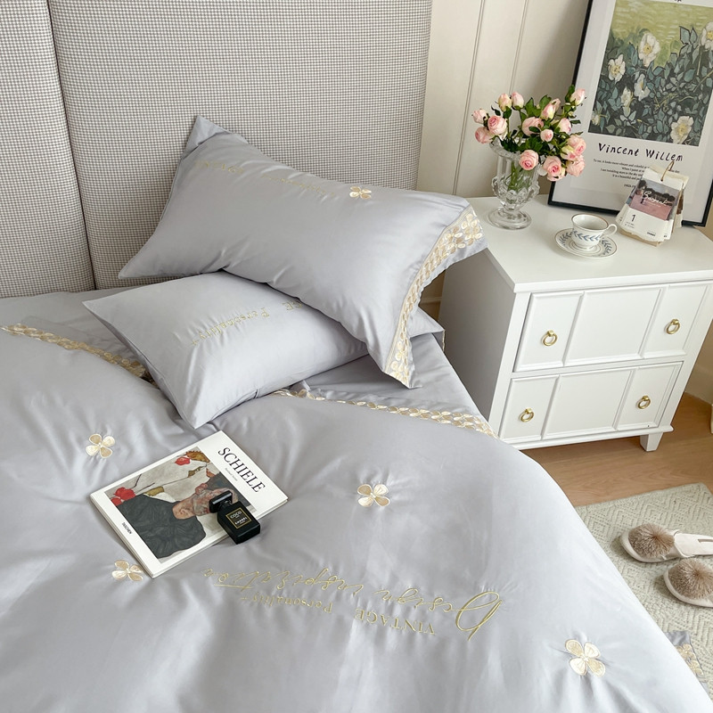 商品名称:柚子 2021新款高端100支澳棉贡缎刺绣四件套 思慕-灰