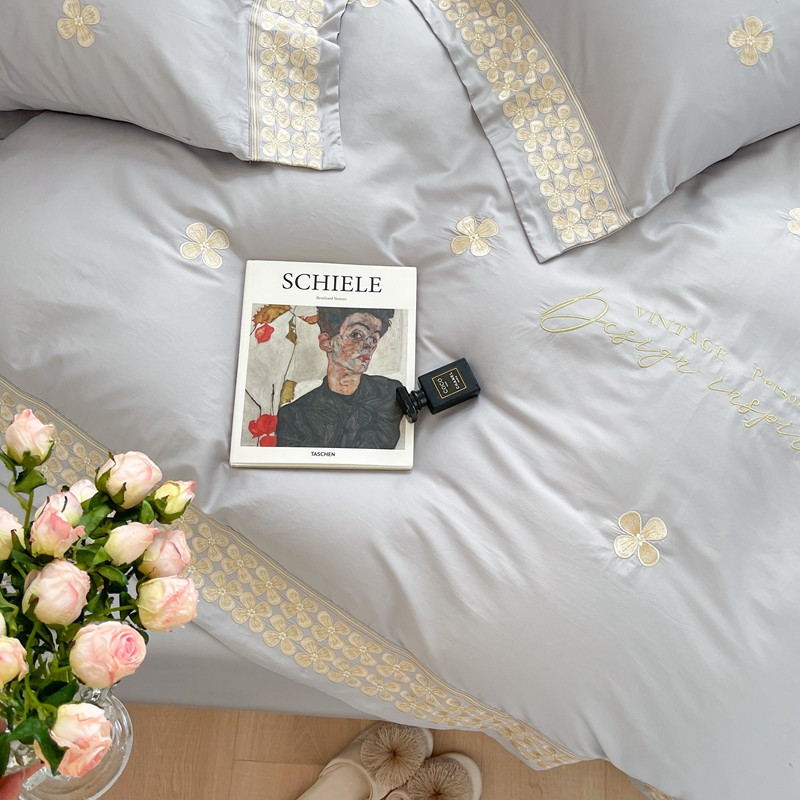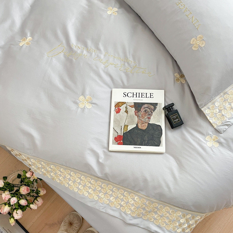 柚子 2021新款高端100支澳棉贡缎刺绣四件套 思慕-灰