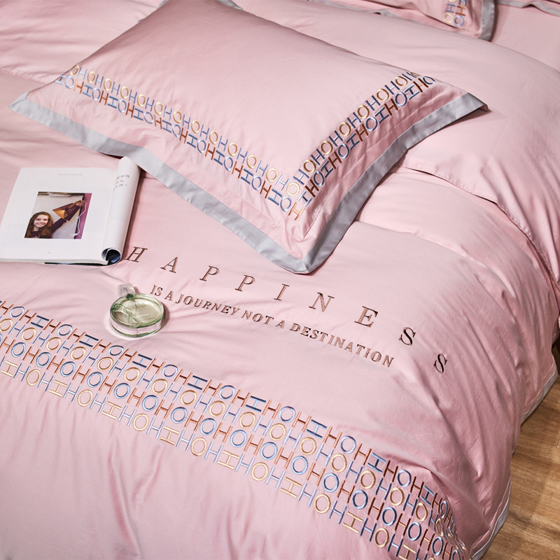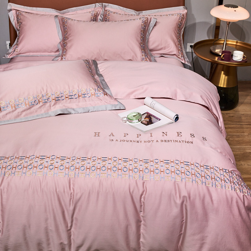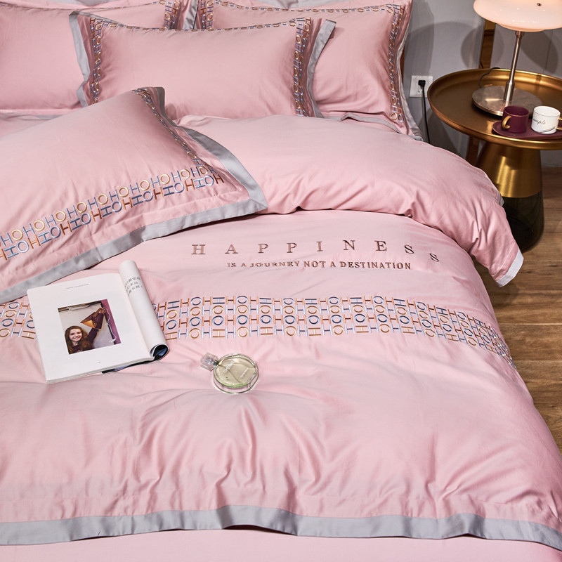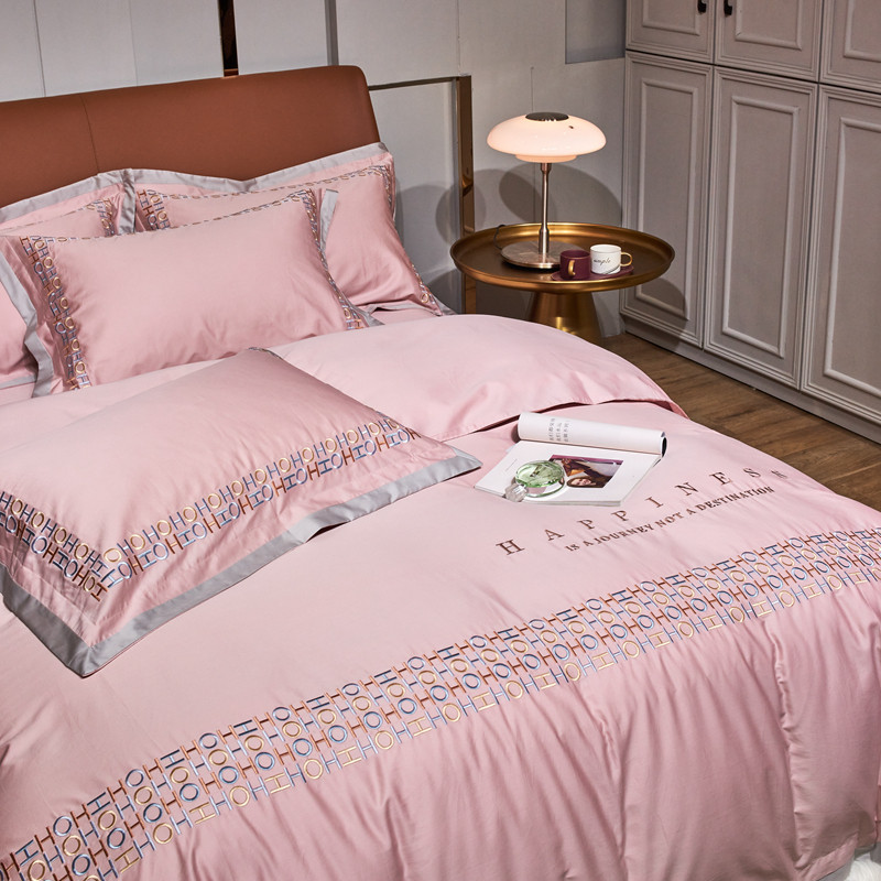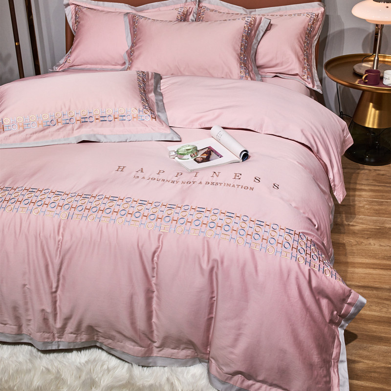 星尚 2021新款秋冬100支长绒棉四件套-欧尔 粉色