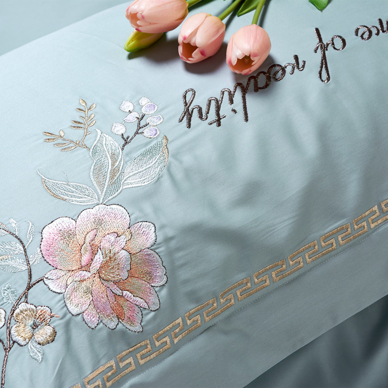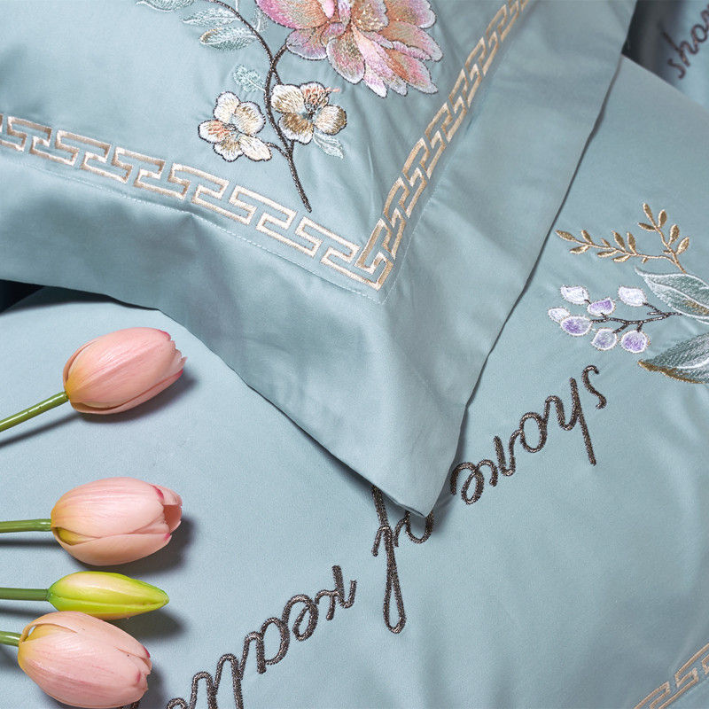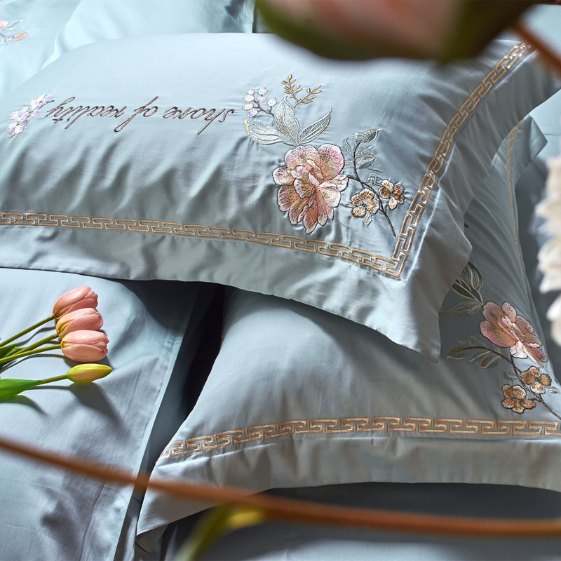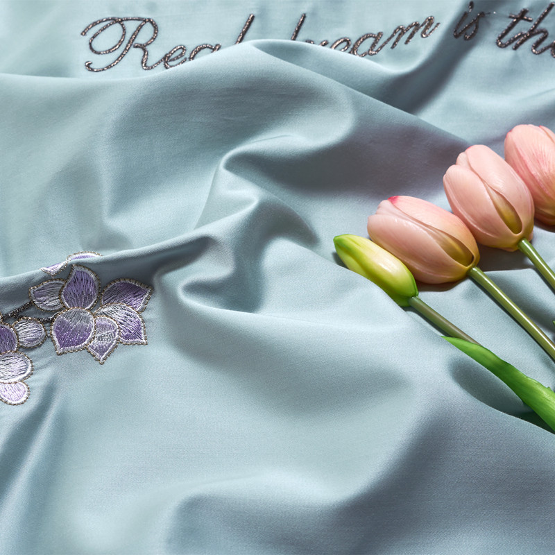 星尚 2021新款秋冬100支长绒棉四件套-知雨花田 天蓝