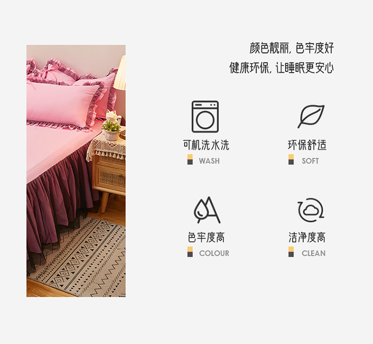 商品名称:莉莉安家纺 2025新款悦色系列纯色磨毛单床裙 樱粉