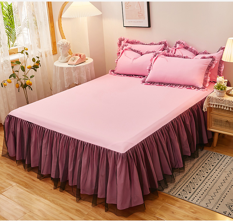 莉莉安家纺 2025新款悦色系列纯色磨毛单床裙 樱粉