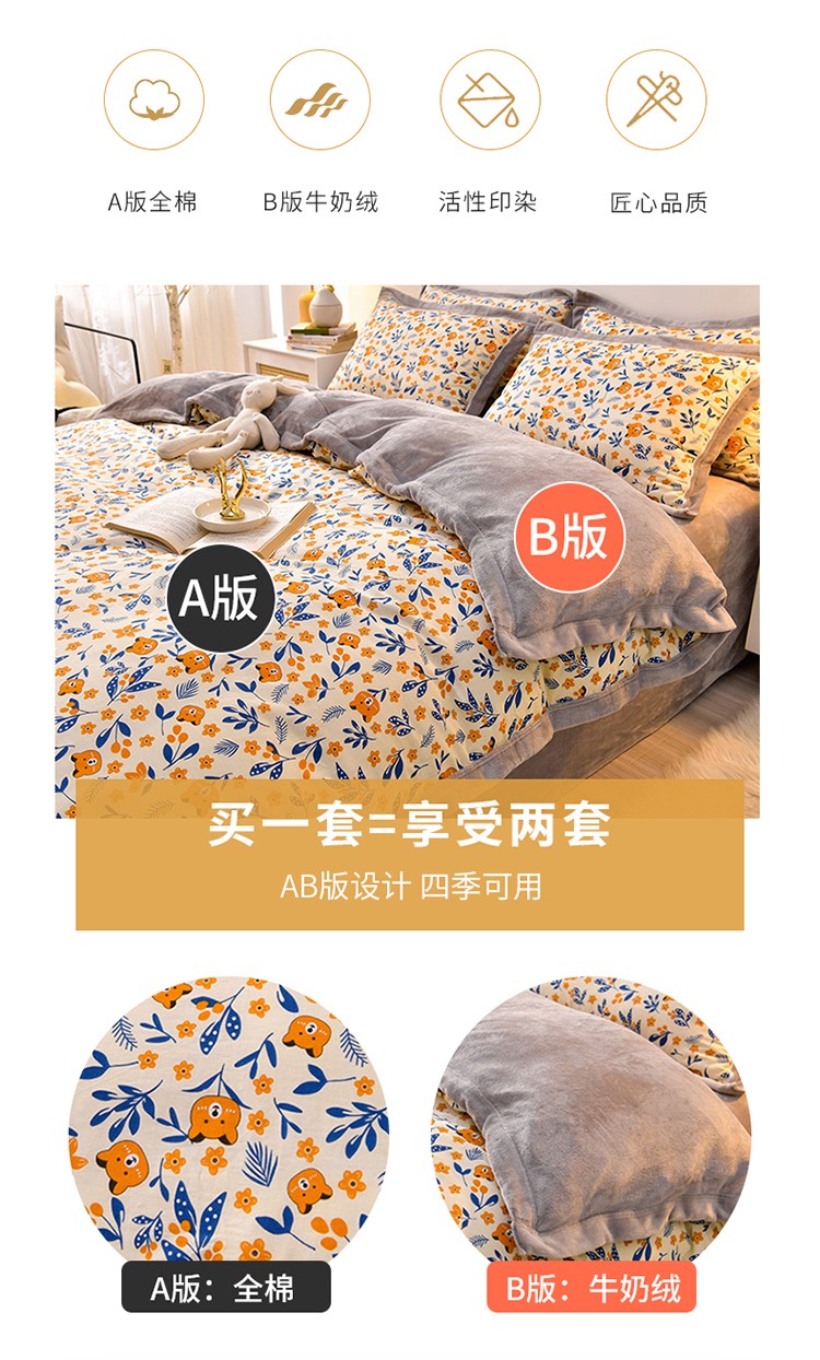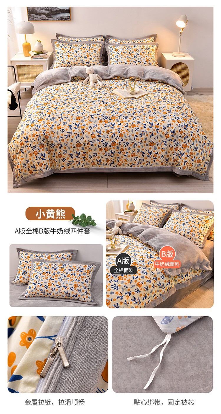当前位置: 91家纺网 > 商品网购 > 床品套件 > 四件套 > 牛奶绒四件套 > 小牛席业 2021新款全棉牛奶绒四件套 小黄熊