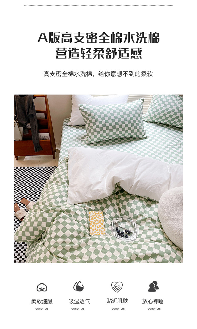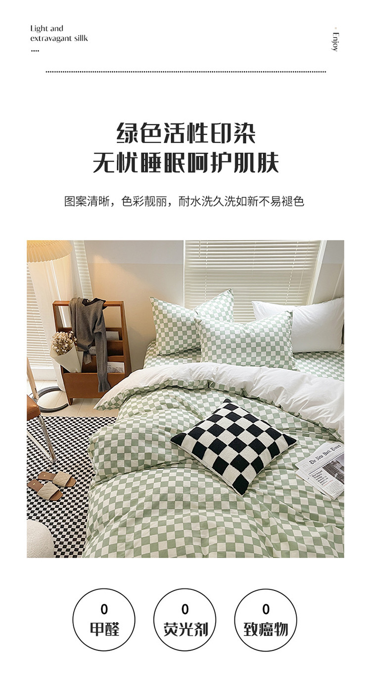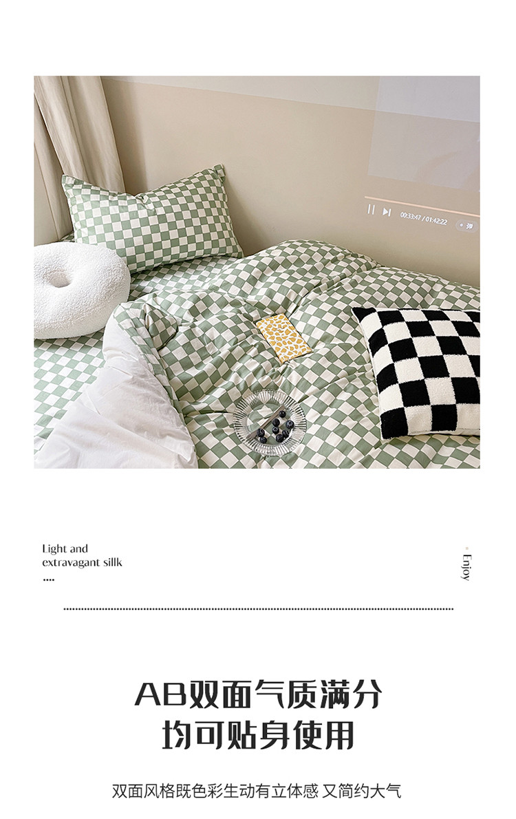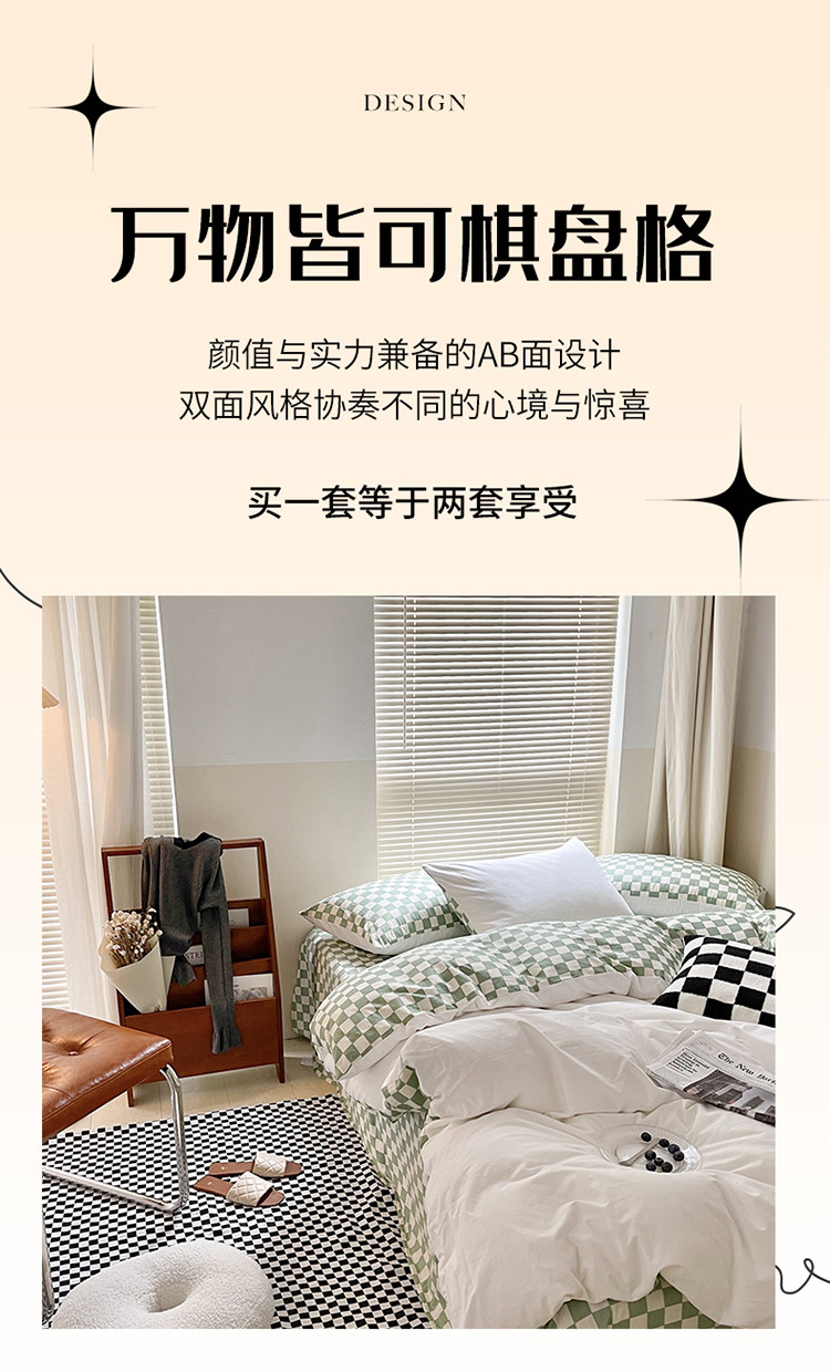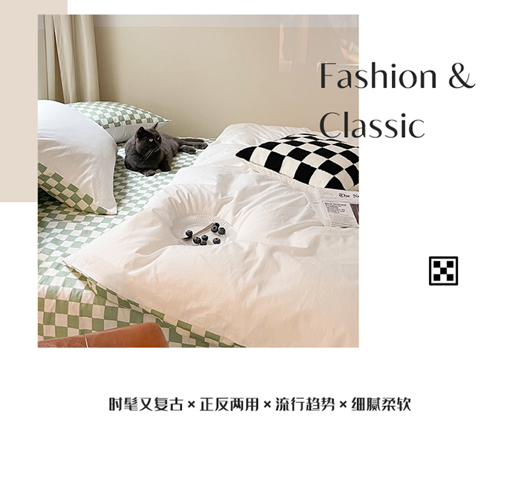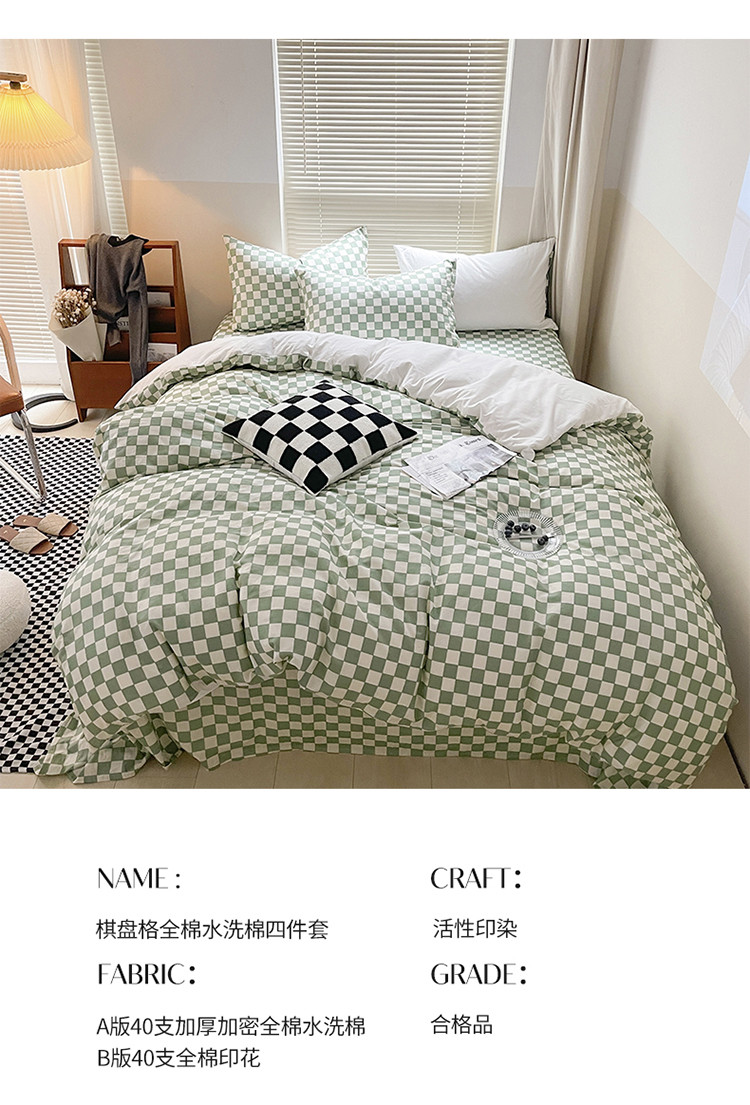 (总)卡巴伦家纺 新款春夏正反两用全棉水洗棉棋盘格四件套-影棚图
