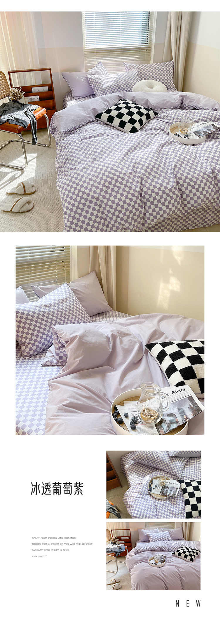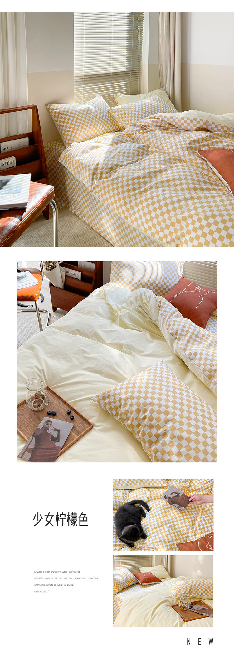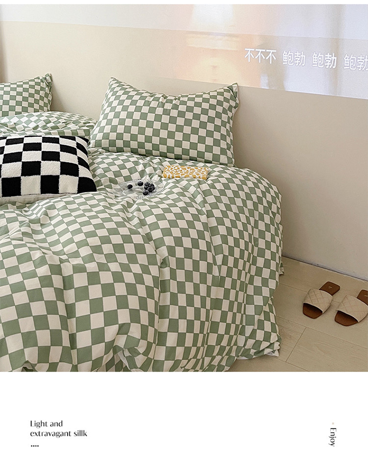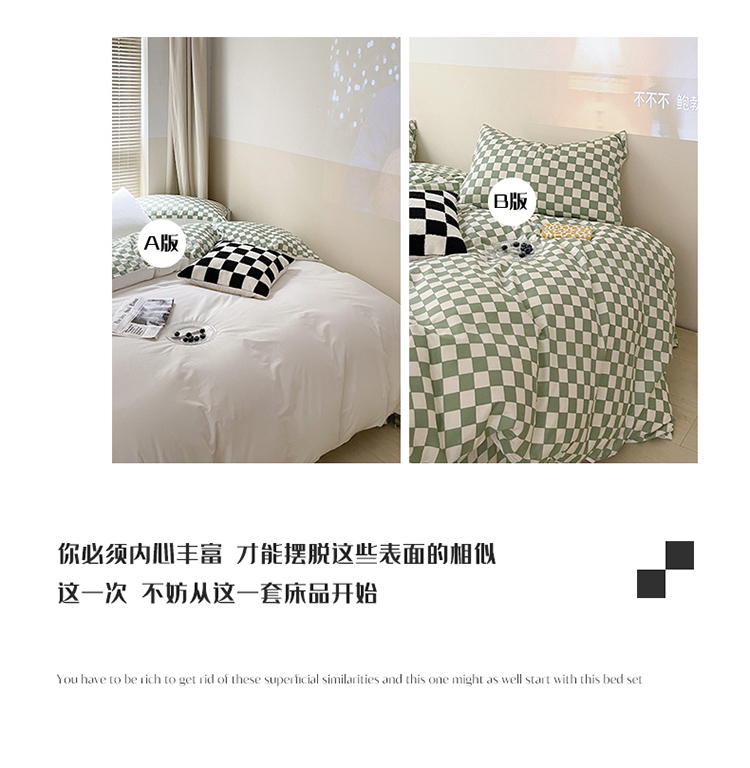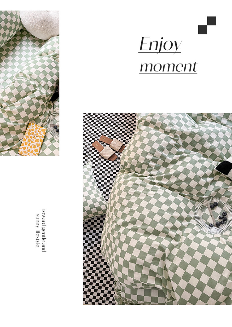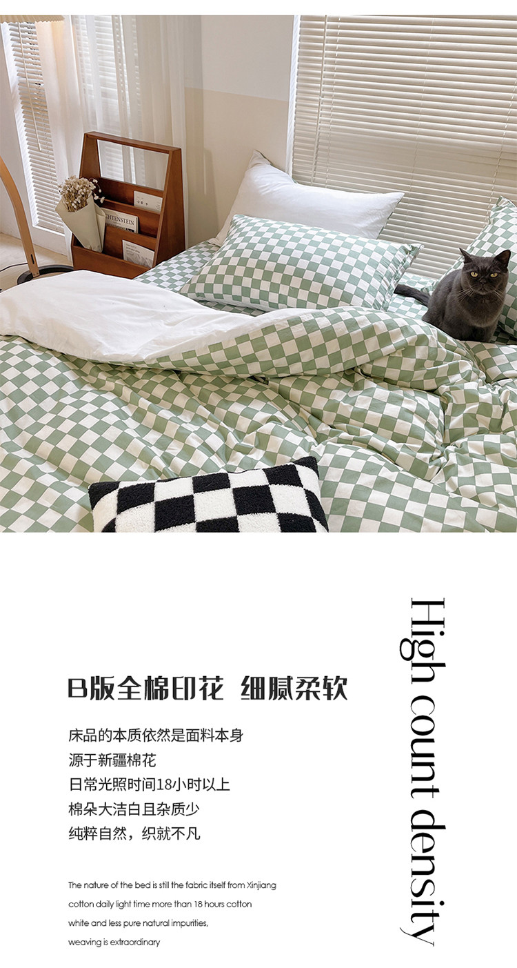 (总)卡巴伦家纺 新款春夏正反两用全棉水洗棉棋盘格四件套-影棚图