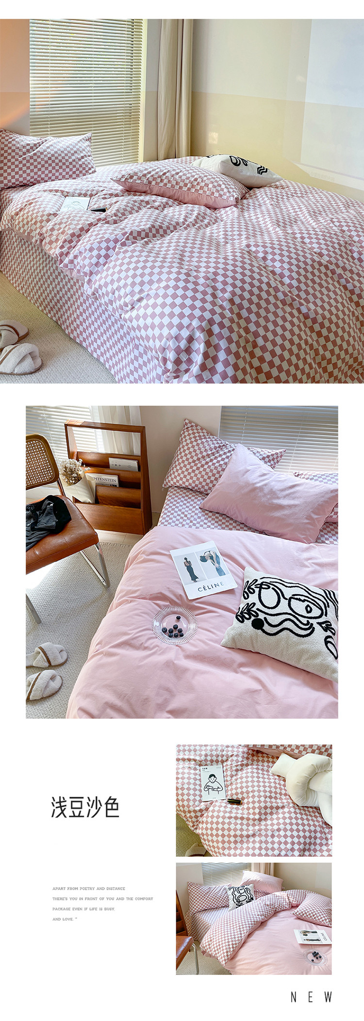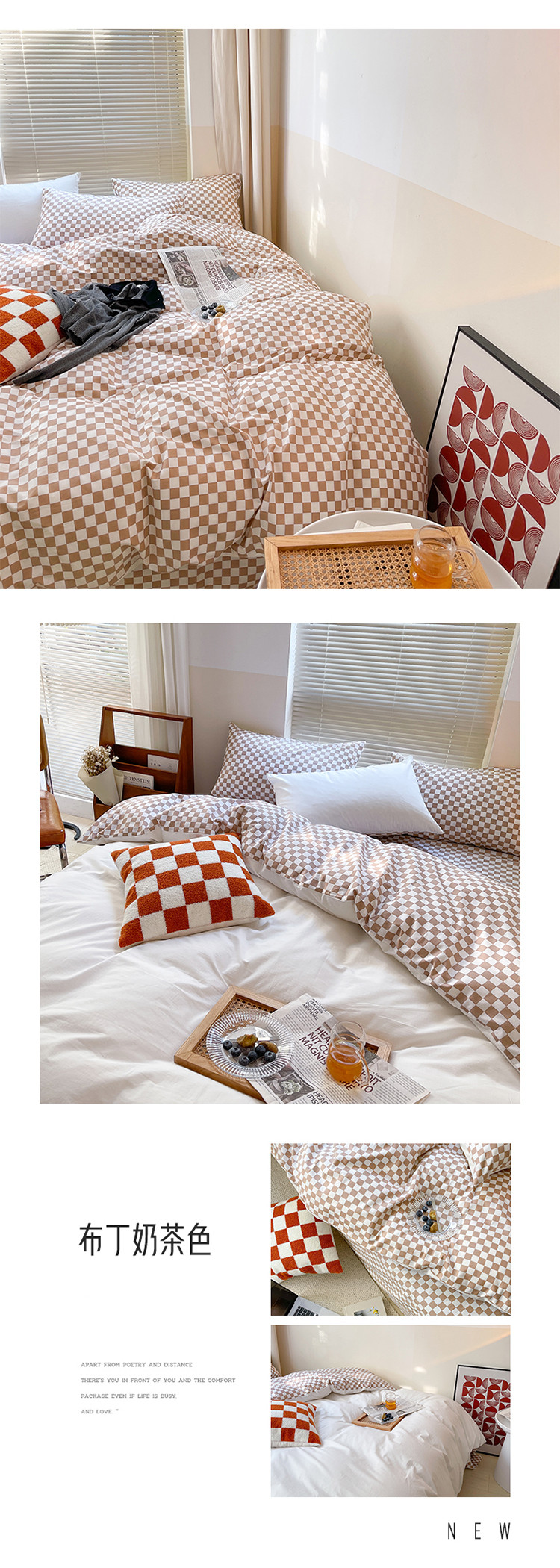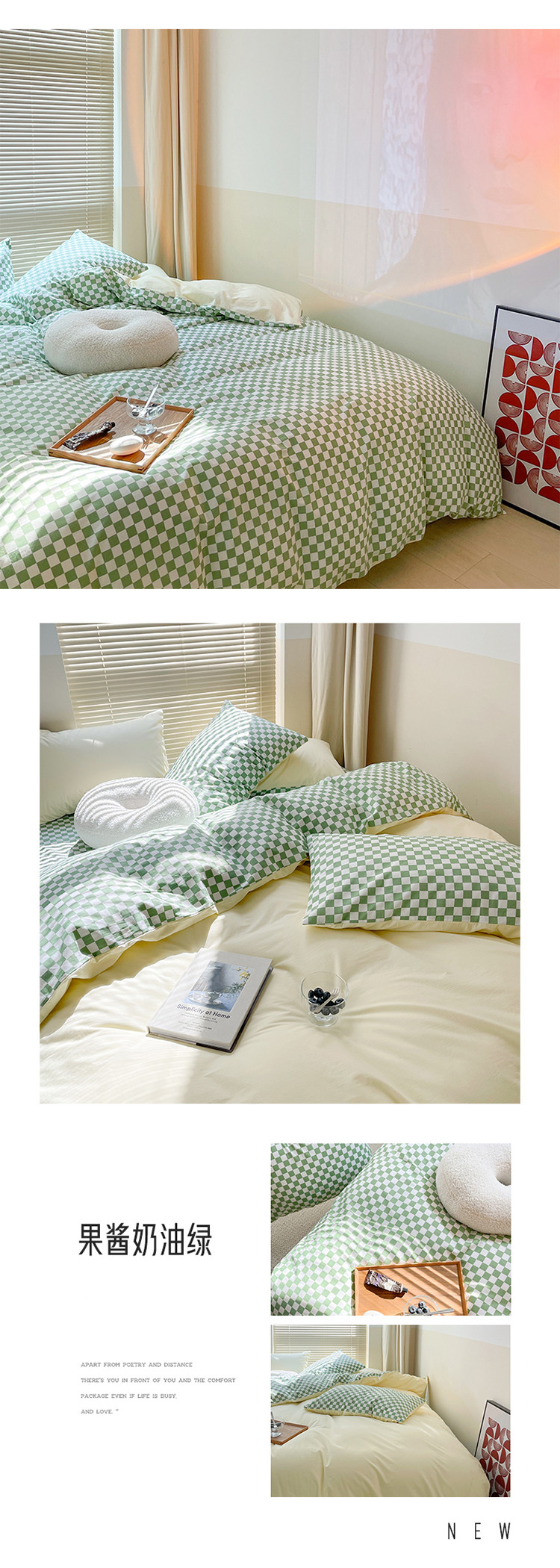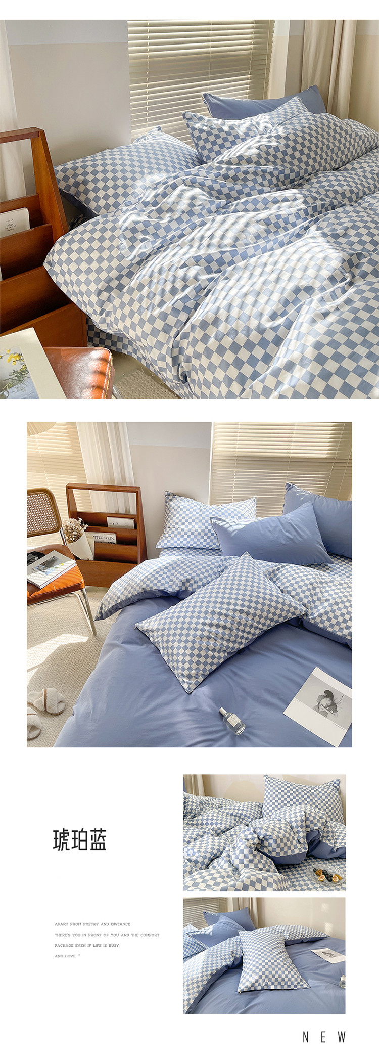 (总)卡巴伦家纺 新款春夏正反两用全棉水洗棉棋盘格四件套-影棚图