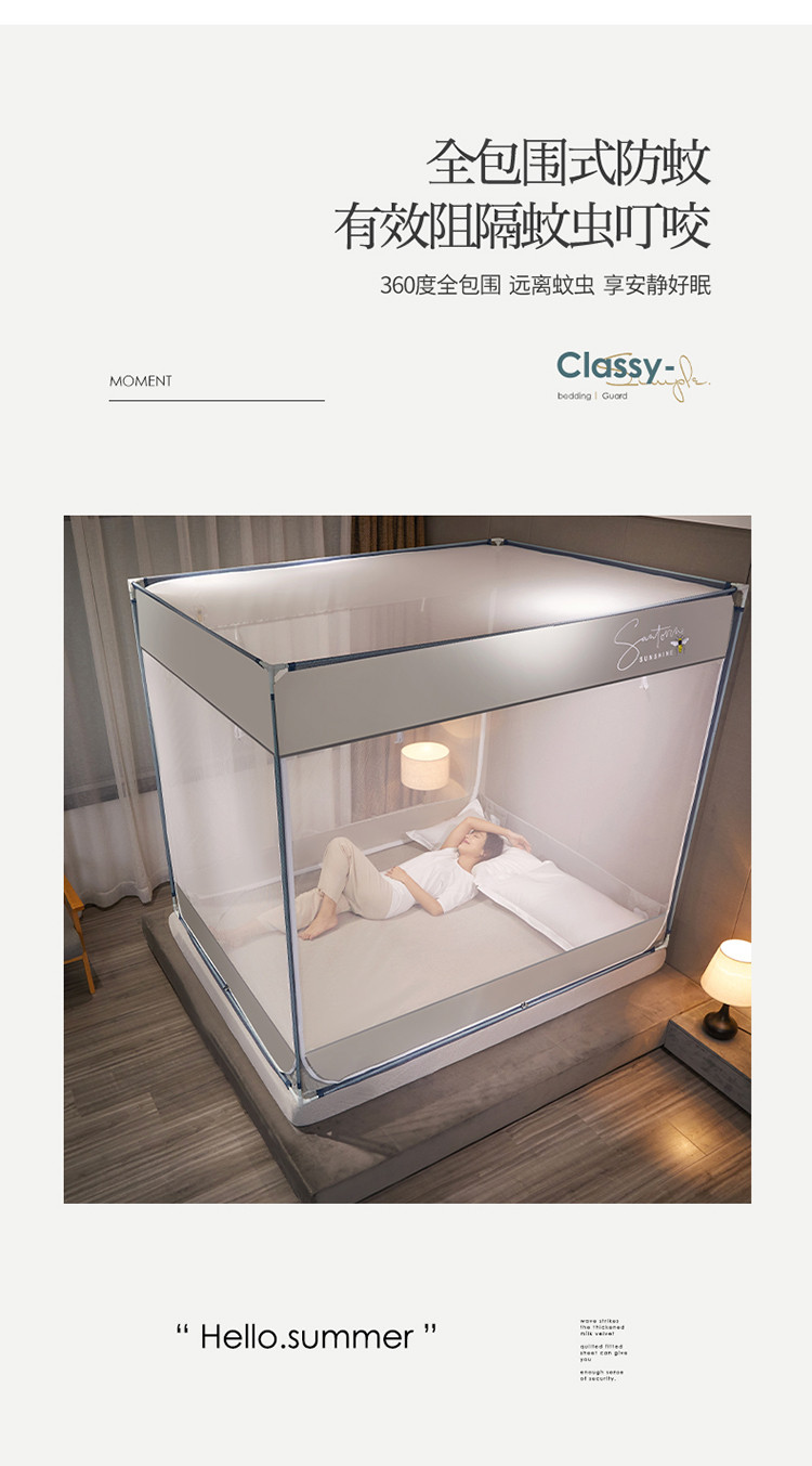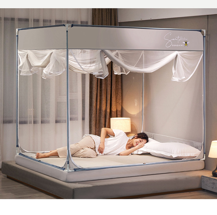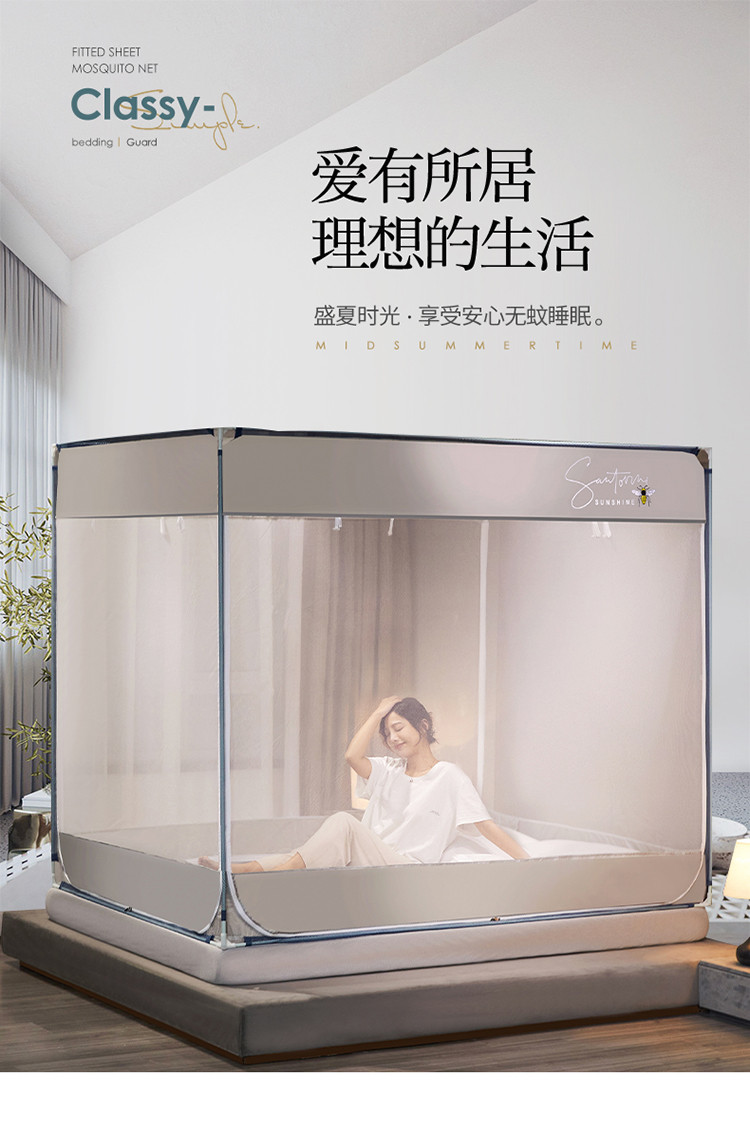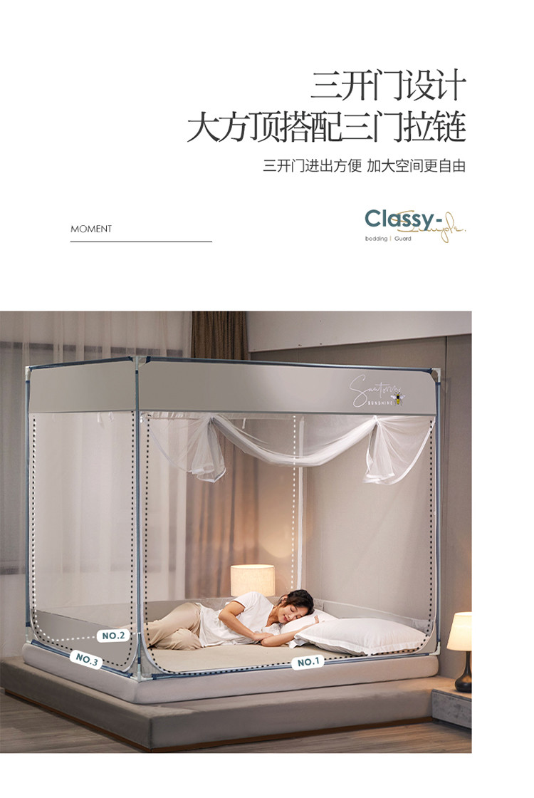 (总)飞轮海蚊帐 2023新款三开门落地遮光蚊帐-L-93,高级灰,芥末绿,奶油黄,香槟