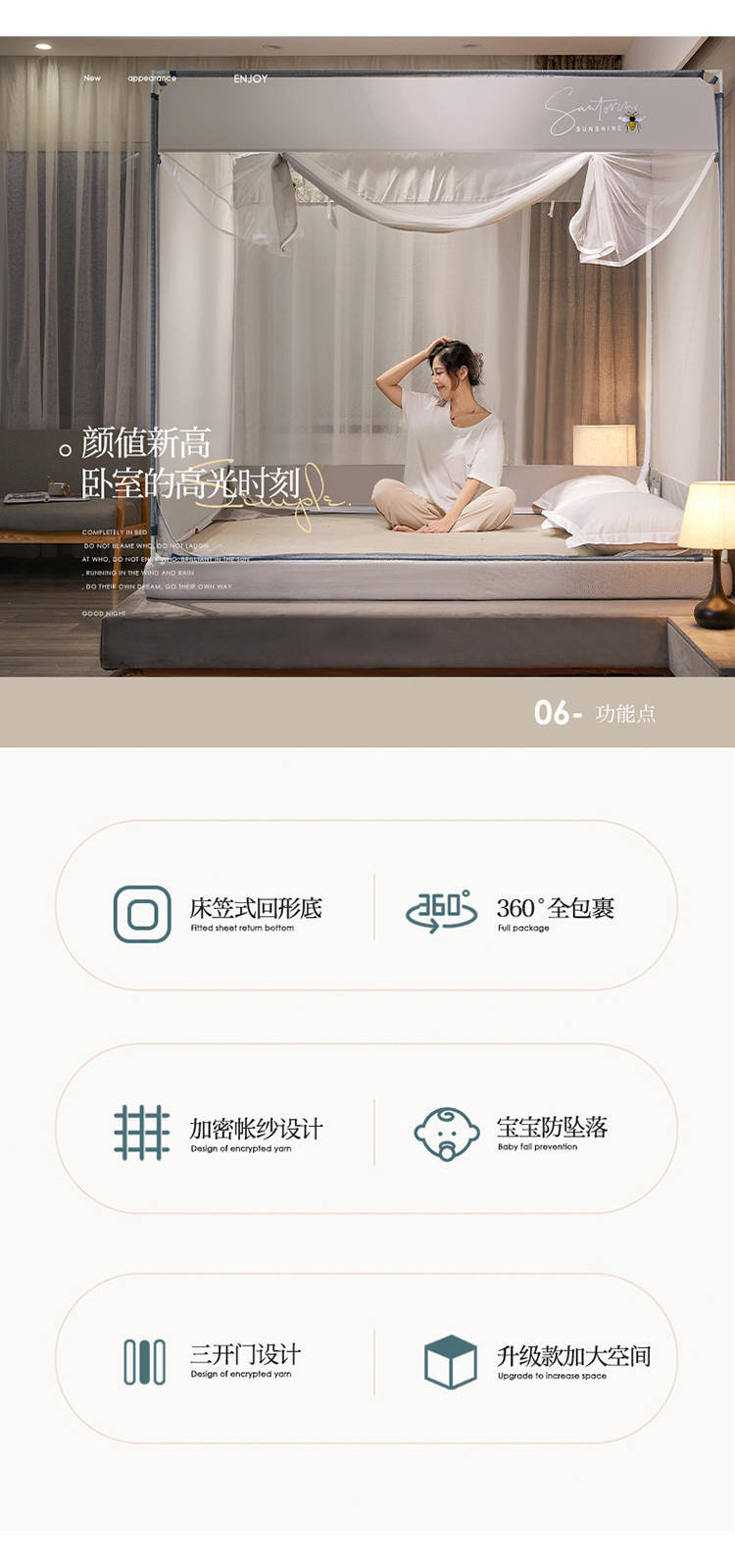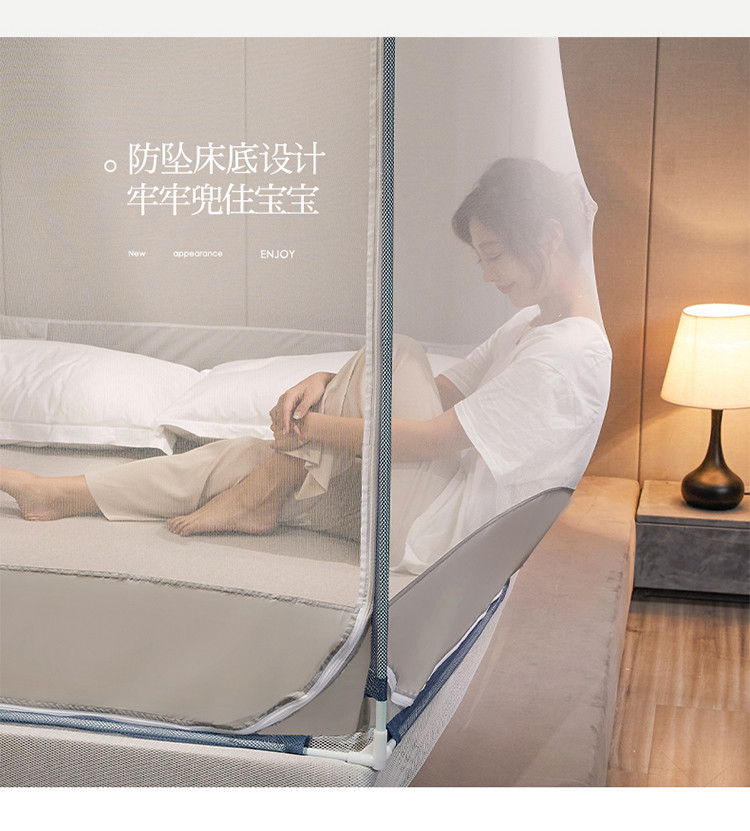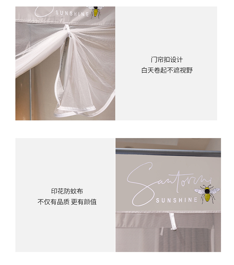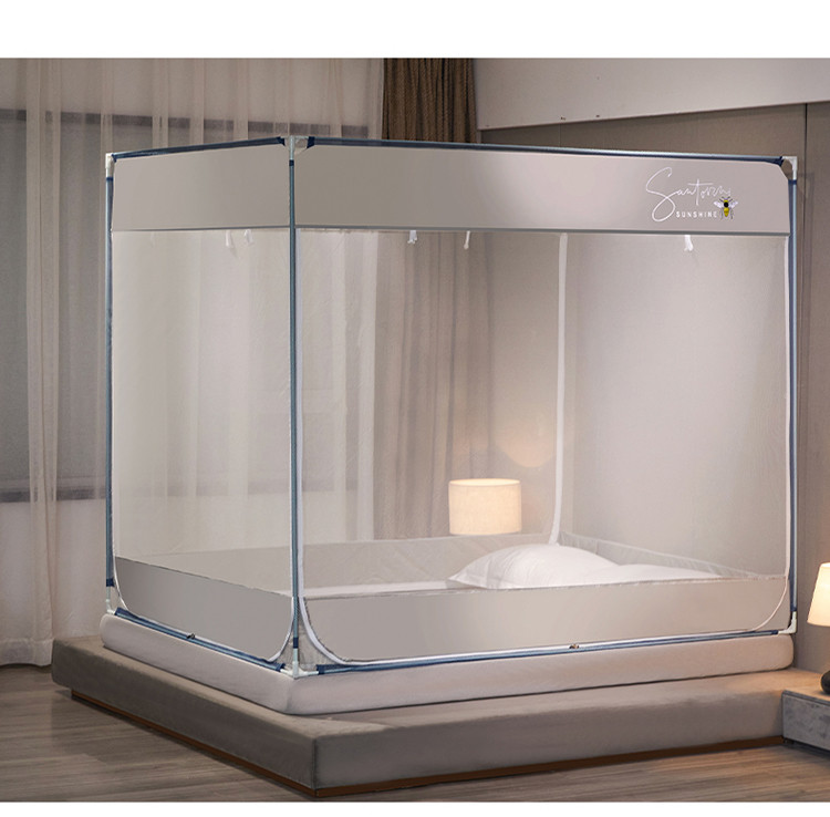 (总)飞轮海蚊帐 2023新款三开门落地遮光蚊帐-L-93,高级灰,芥末绿,奶油黄,香槟