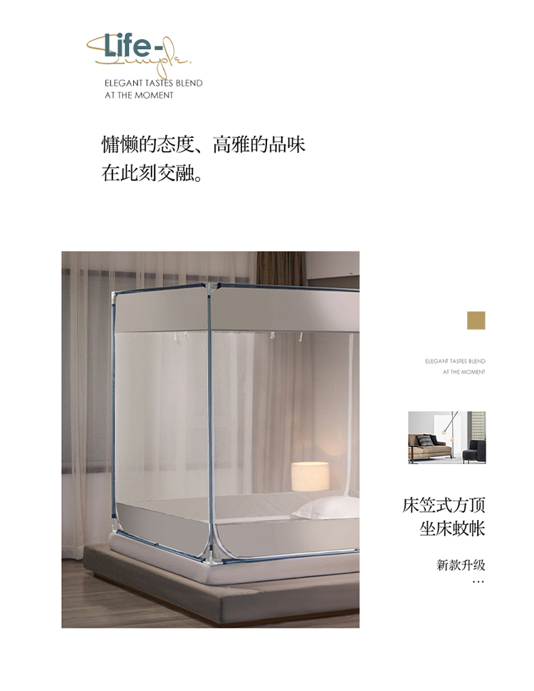 商品名称:飞轮海蚊帐新款多功能床笠式方顶坐床式蚊帐-Z68白灰