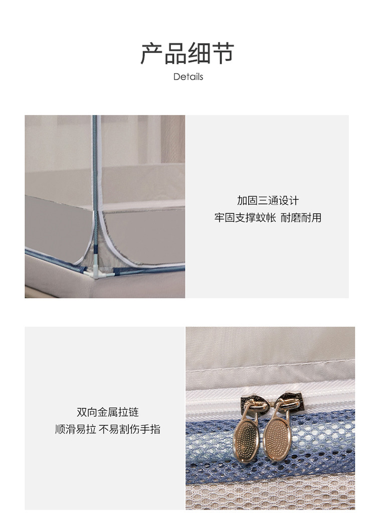 (总)飞轮海蚊帐 2023新款U型三开门遮光坐床蚊帐-Z-75,黛蓝,奶油黄,香槟