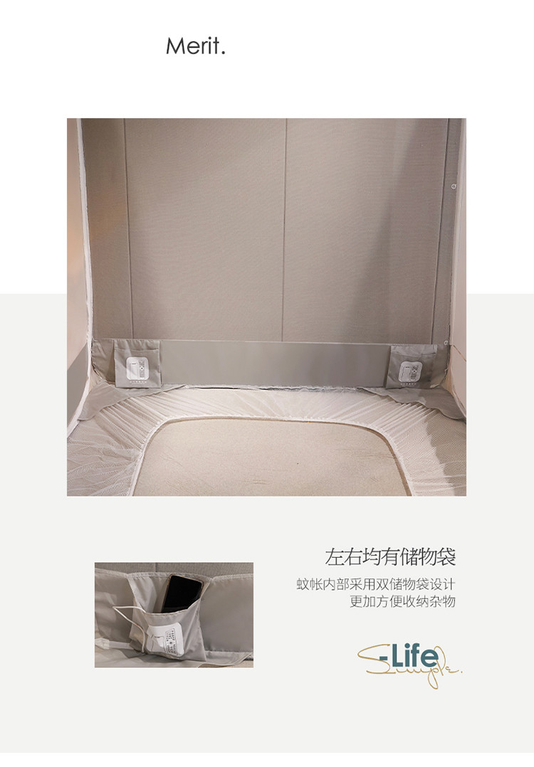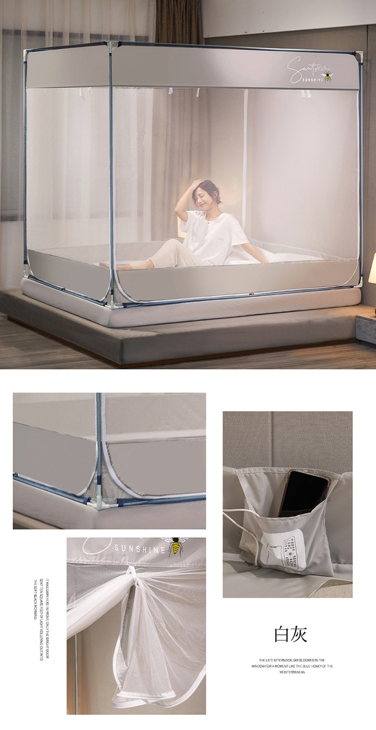 飞轮海蚊帐新款多功能床笠式方顶坐床式蚊帐-Z68白灰