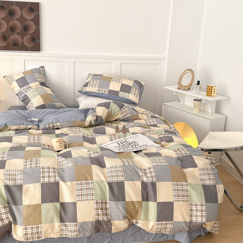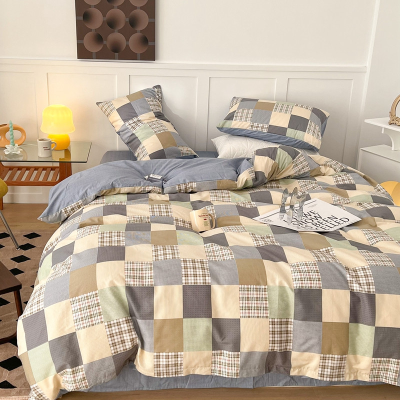 昔可家纺 2022新款13372全棉普通款简约ins四件套 拼接格