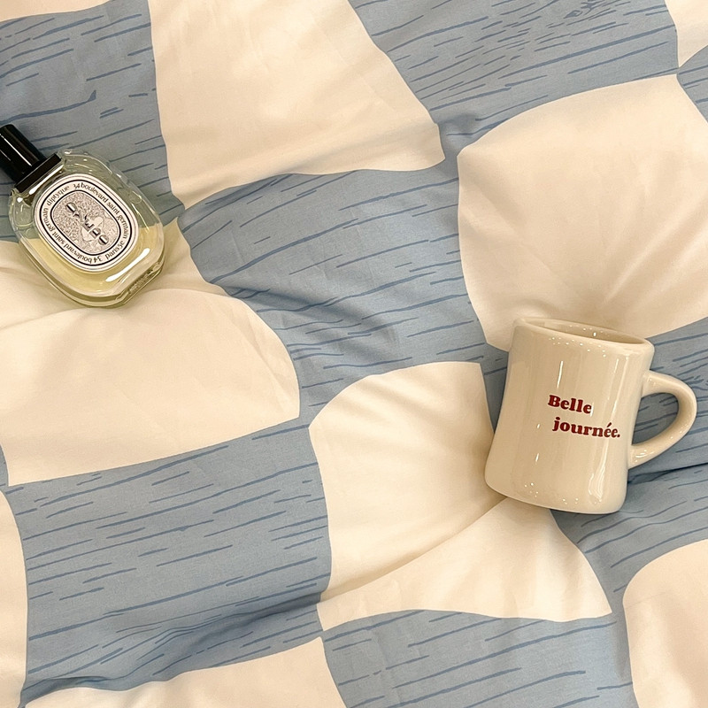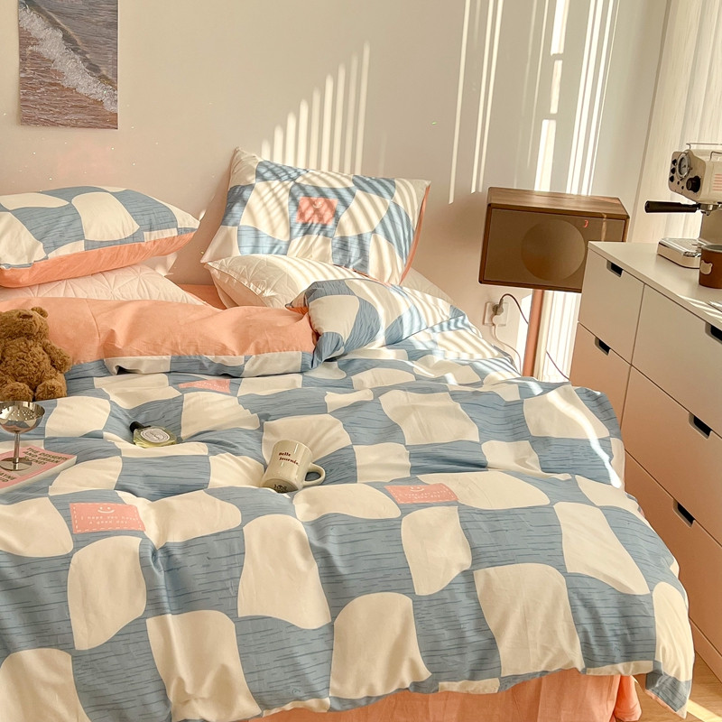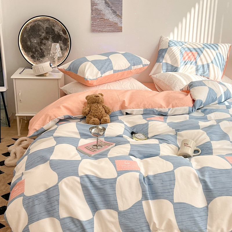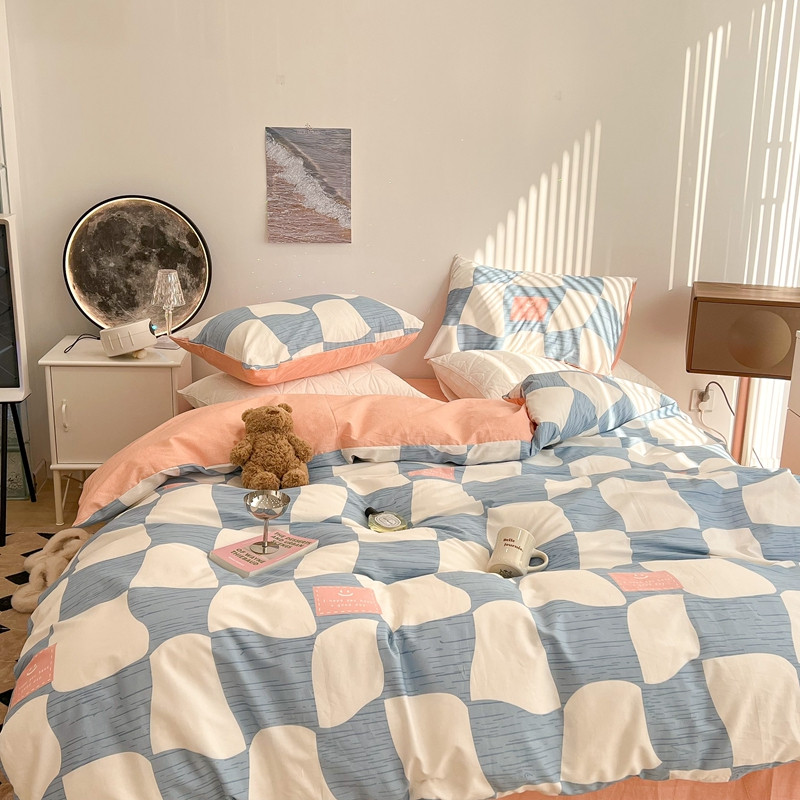 昔可家纺 2022新款13372全棉普通款异形棋盘格四件套 异形棋盘蓝