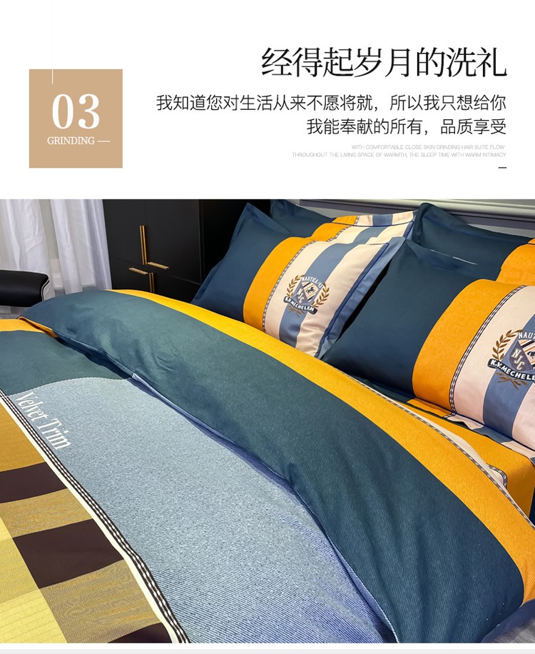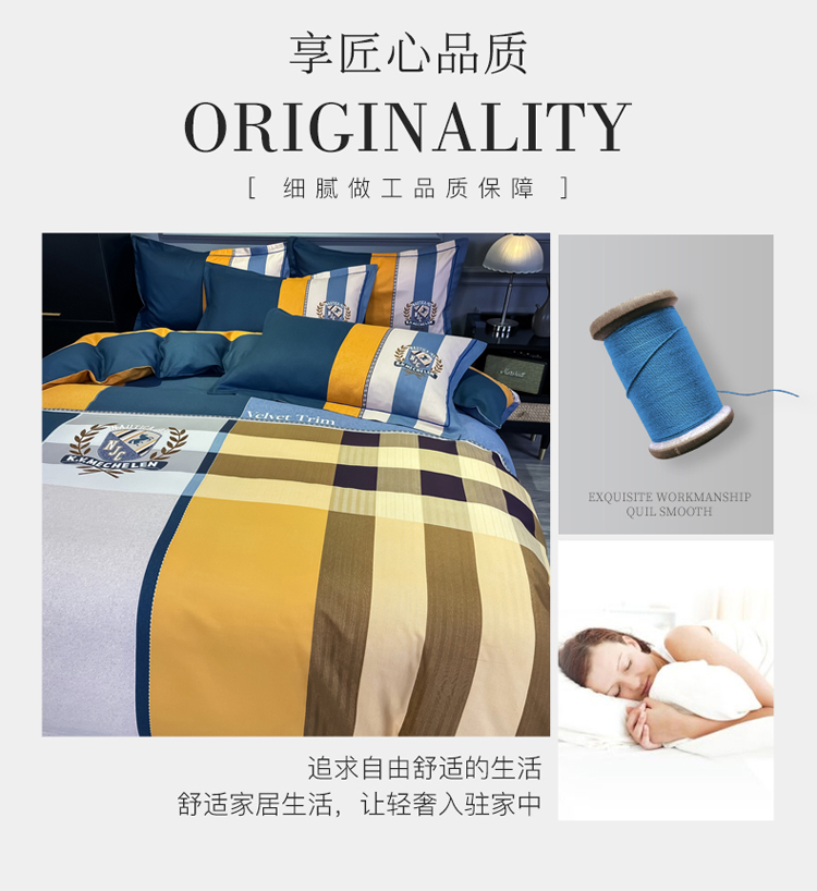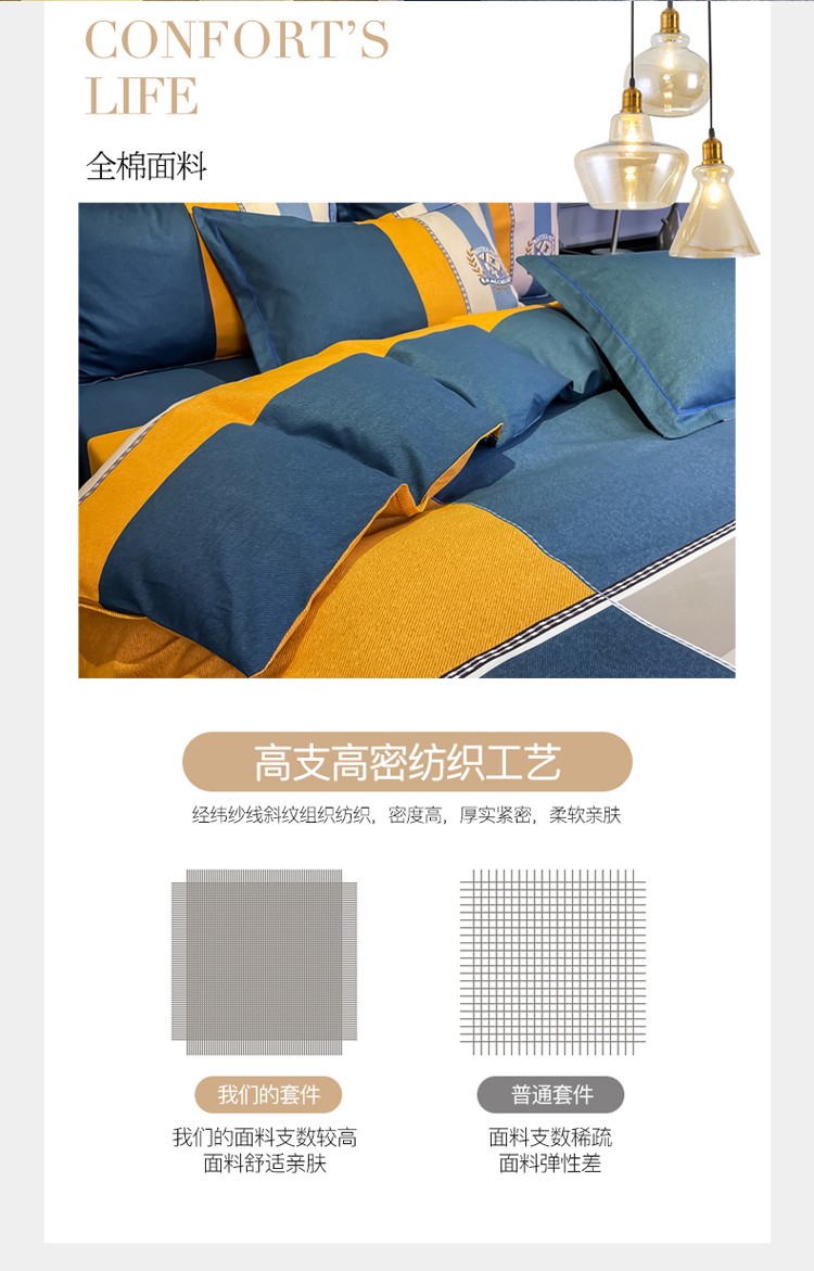 当前位置: 91家纺网 > 商品网购 > 床品套件 > 四件套 > 全棉普通四件套 > 金爱家 2023新款全棉13372简约条格四件套 摩登