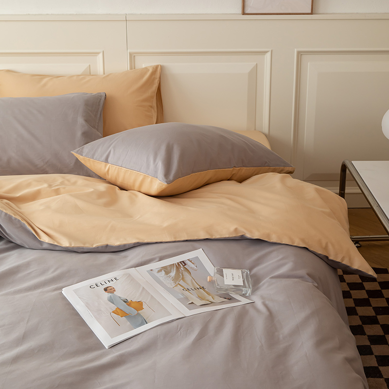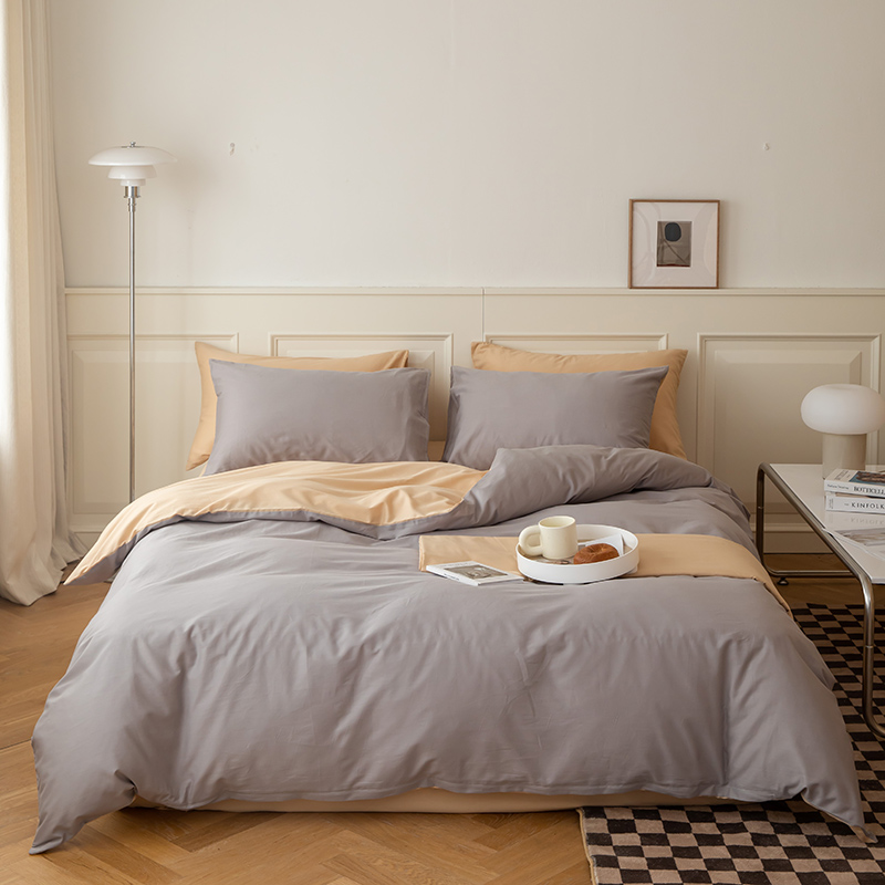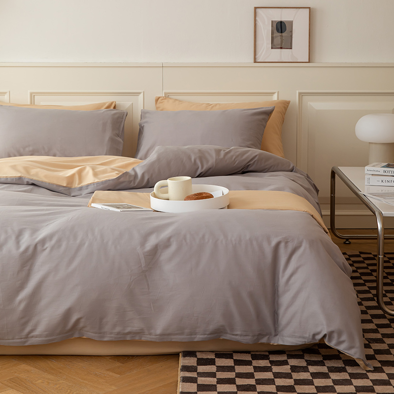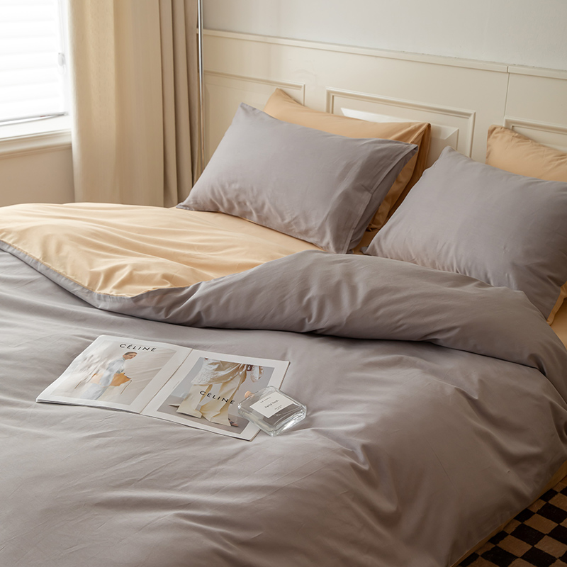 绫韵 2022新款13374全棉素色双拼系列被套 高级灰+浅米驼