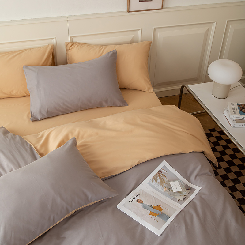 商品名称:绫韵 2022新款13374全棉素色双拼系列被套 高级灰+浅米驼