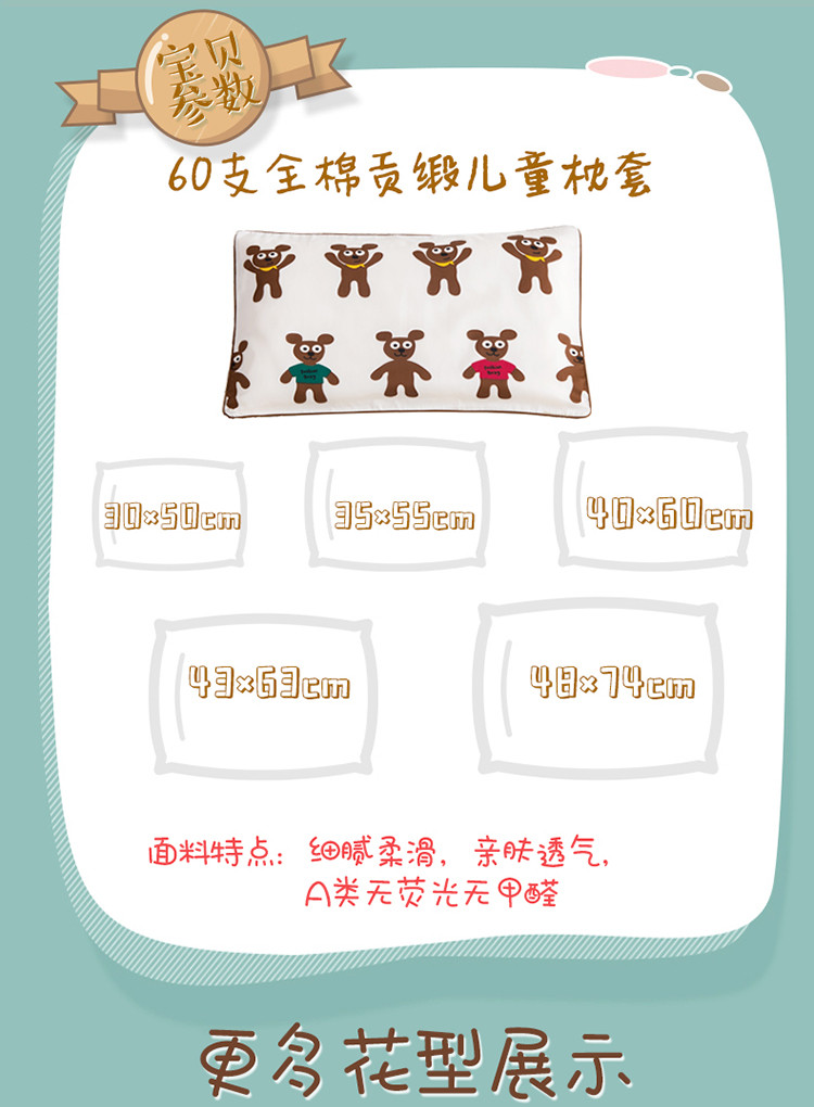 商品名称:A类60支儿童枕套全棉贡缎小孩枕套一只幼儿园宝宝纯棉枕头套