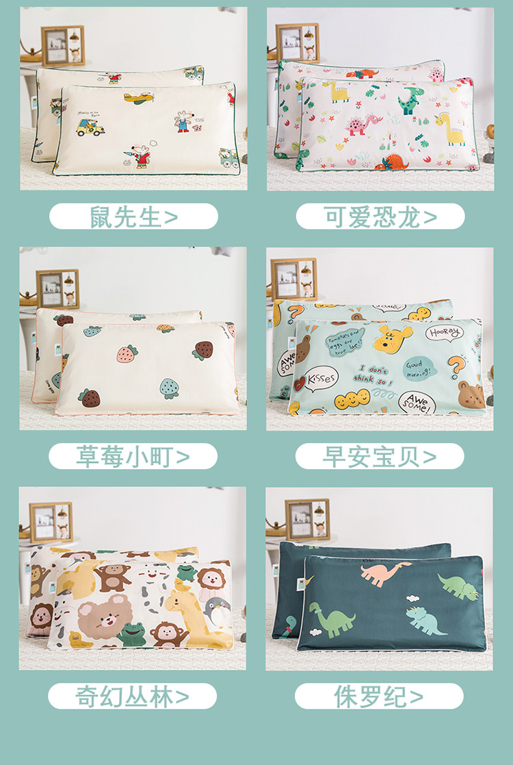 (总)良佐生活 2025新款50支夏天A类莱赛尔天丝枕套学生卡通儿童枕套冰丝枕头套, 彩虹恐龙, 汽车小镇,蝴蝶结小兔,彩虹小鸭,开心马戏团,爱心兔兔, 海洋伙伴,企鹅北极熊, 苹果小熊,侏罗纪公园