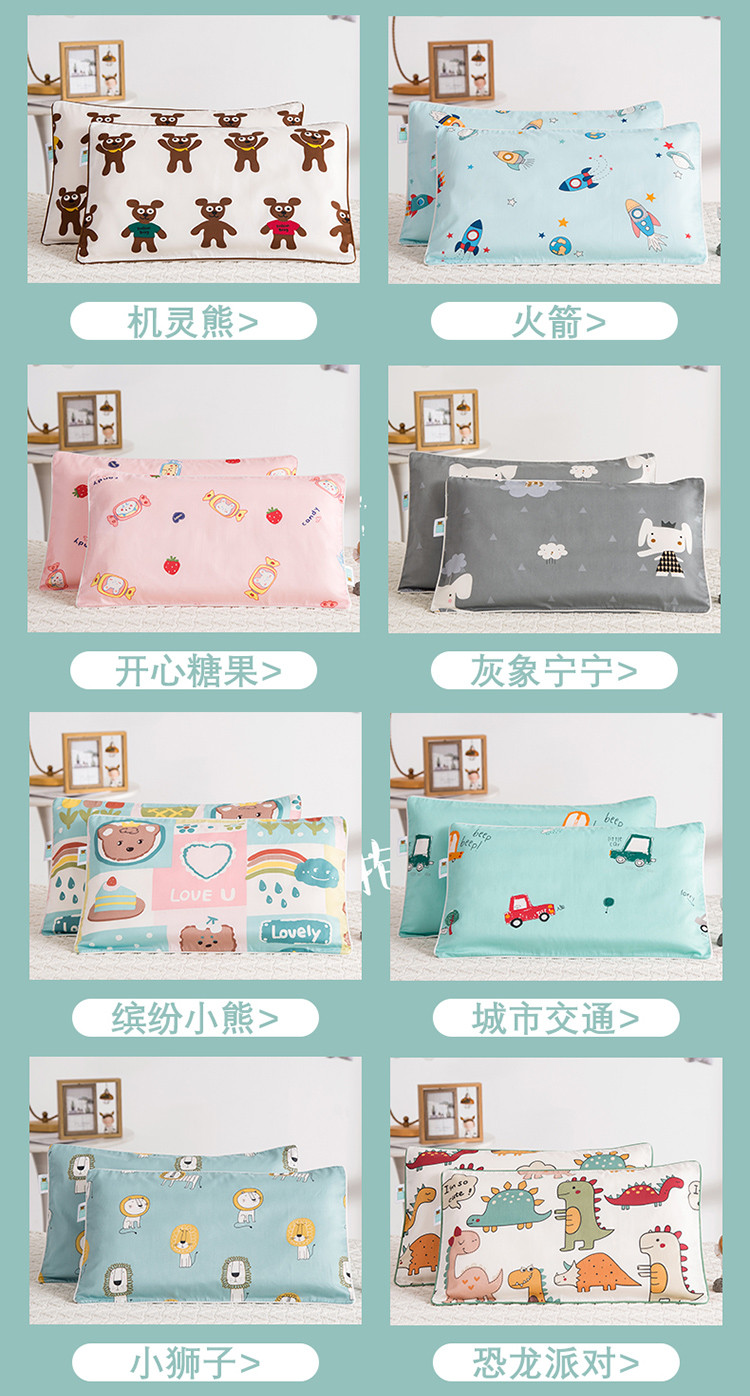 (总)良佐生活 2023新款A类60支全棉贡缎乳胶枕枕套儿童橡胶枕头套高低,口袋熊,恐龙宝宝,开心熊 粉,冰淇淋,恐龙乐园,花仙兔,贝塔 粉,挖掘车