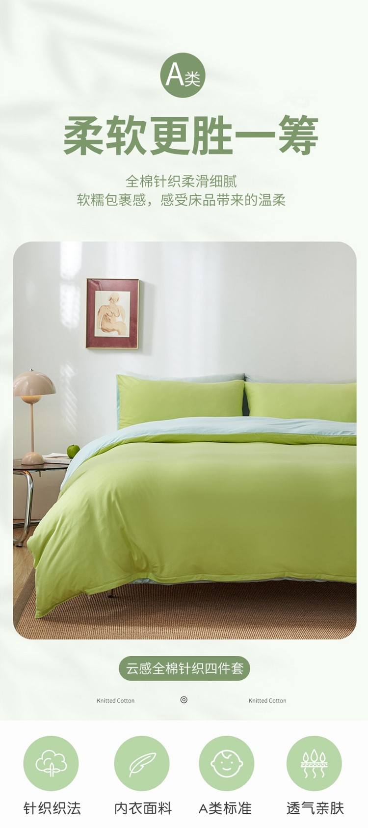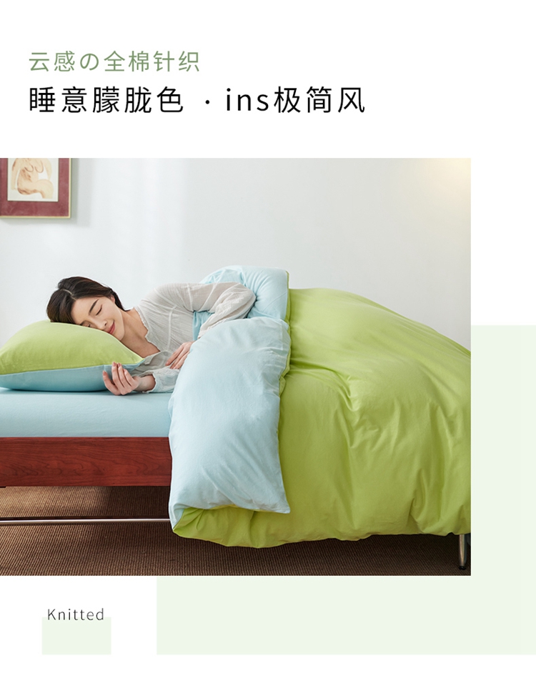 当前位置: 91家纺网 > 商品网购 > 床品套件 > 四件套 > 全棉普通四件套 > 风向标 2022新款A类云感全棉针织素色双拼四件套 棉花果糖