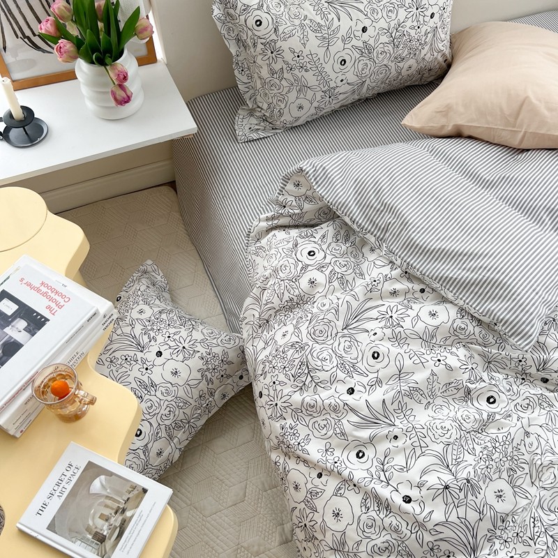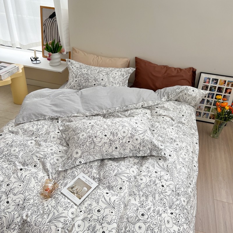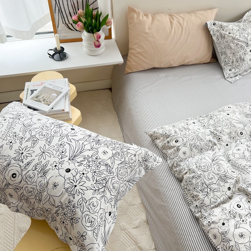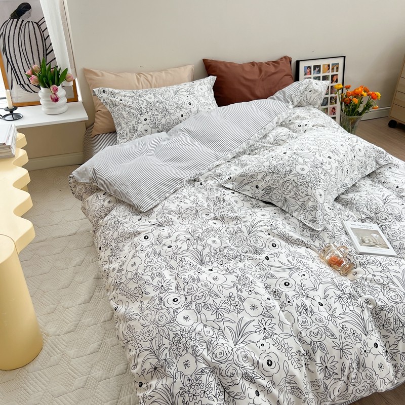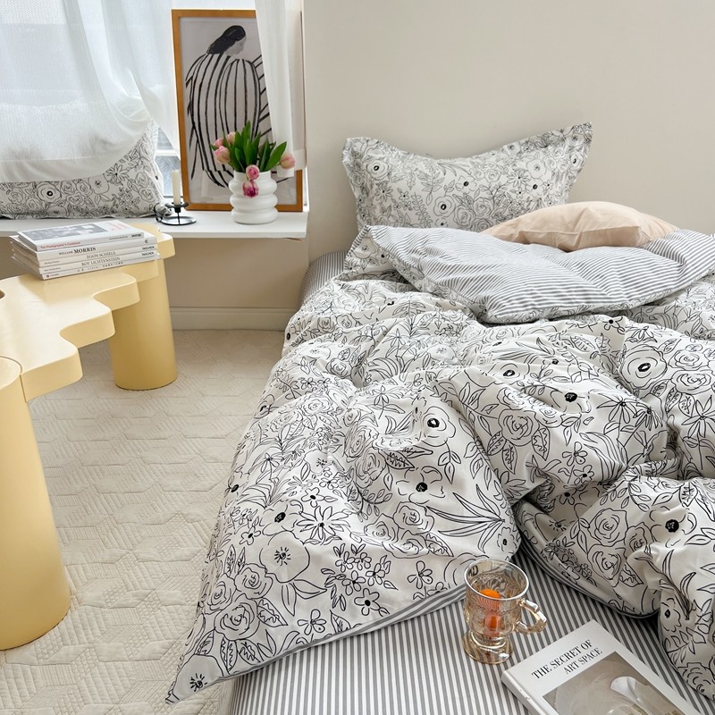 (总)柚子YOUTH 225新款全棉双层纱球球款四件套,薄荷绿条,波点霉霉,波点小丑,蓝心,芊芊结,碎花点点