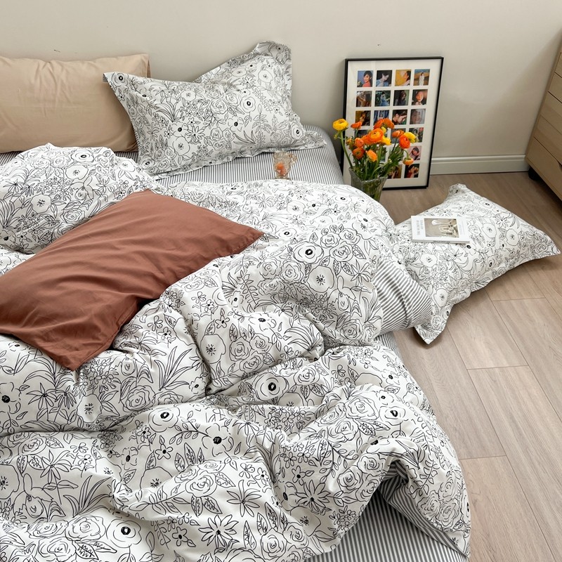 (总)柚子YOUTH 2025新款全棉双层纱华夫格提花暖绒四件套,馥郁花香,咖豹纹,兰格蜡笔画,玫瑰兔兔,拼图爱丽丝,ins咖格