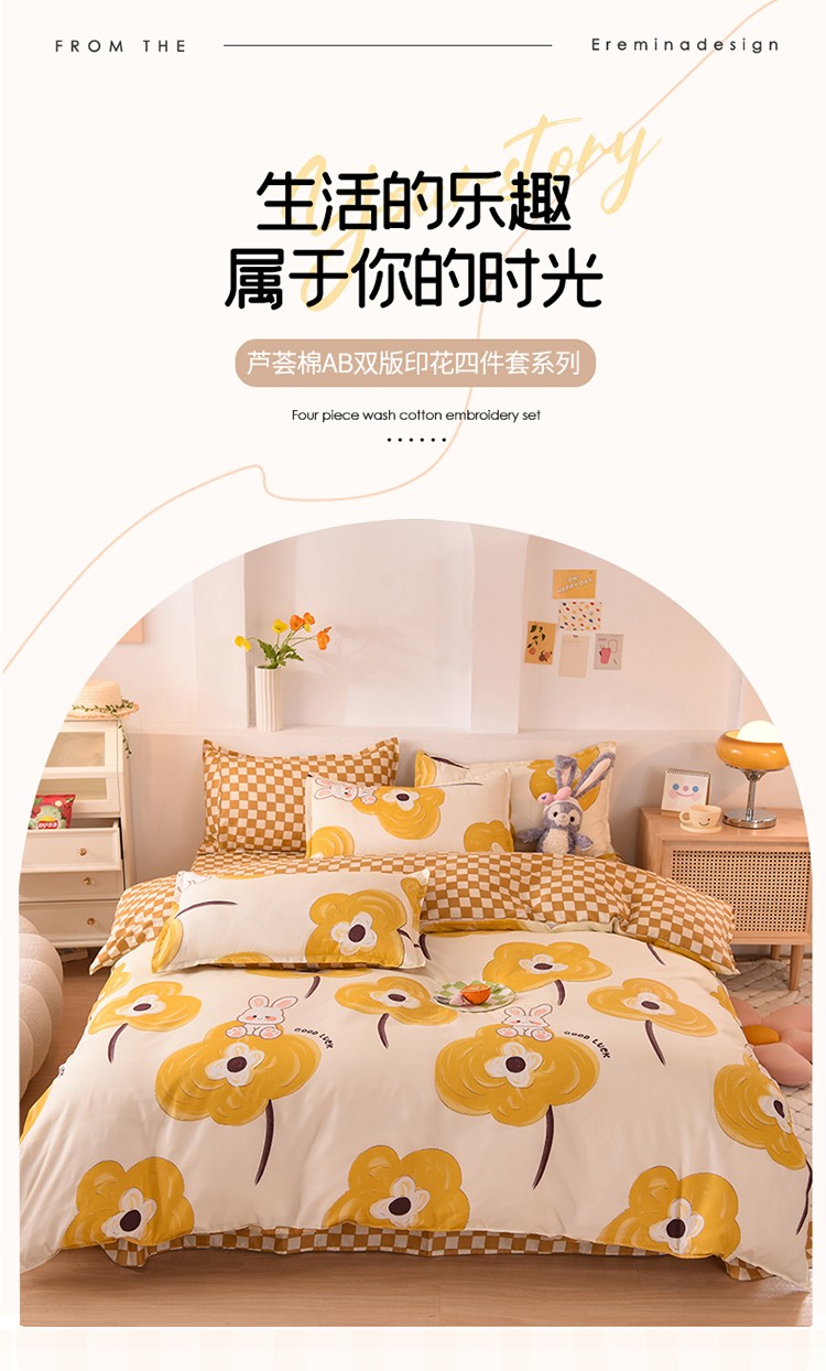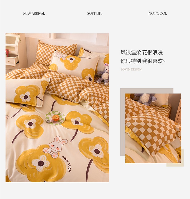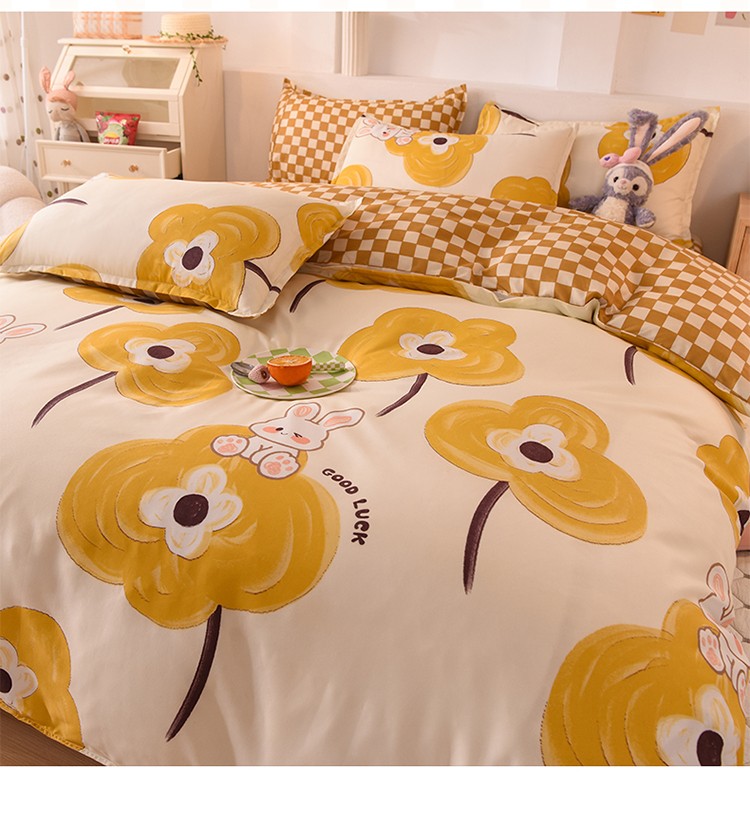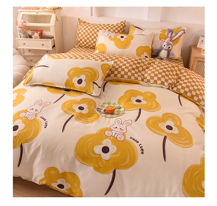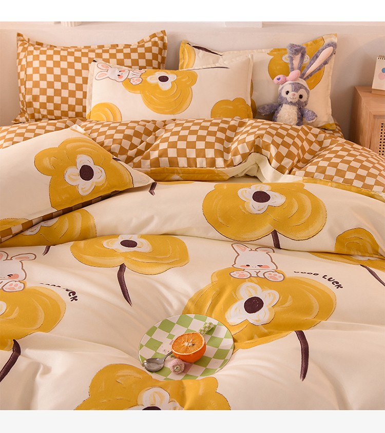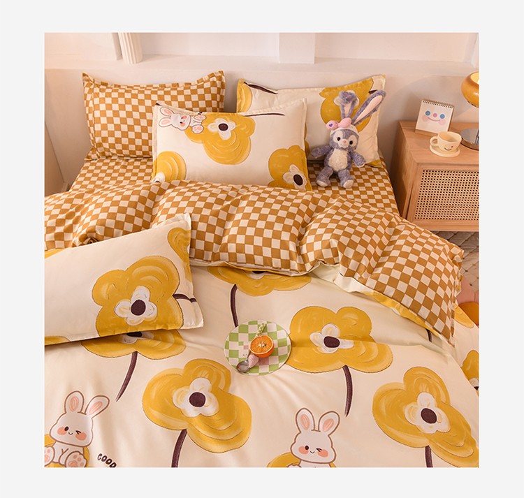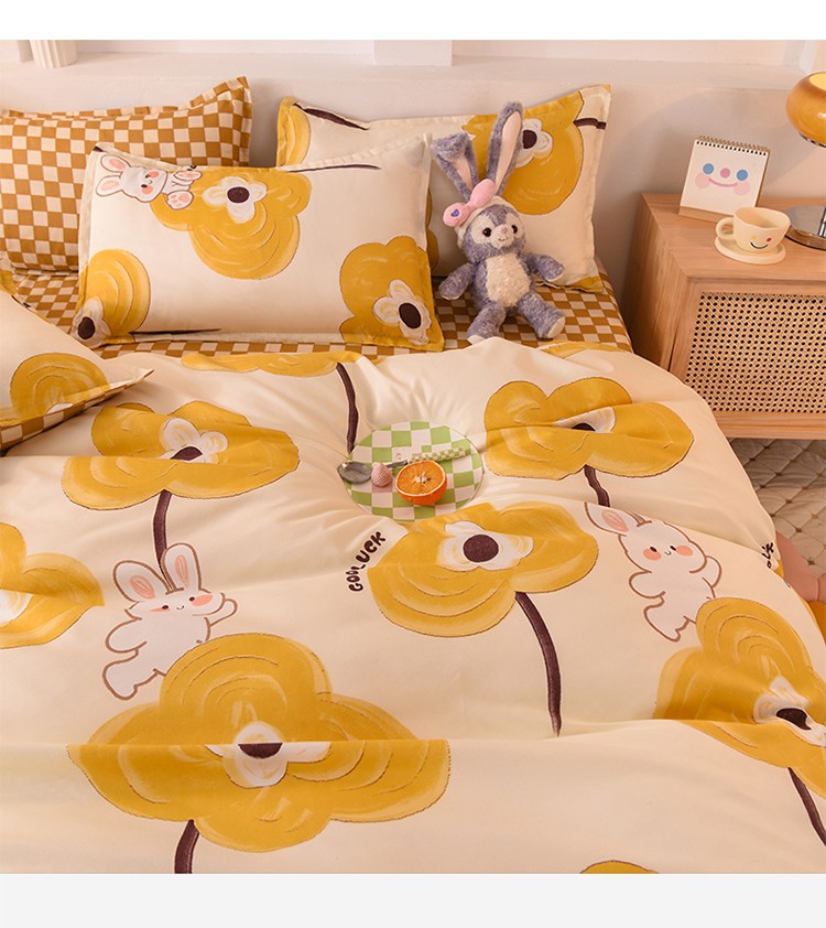 妖妖家纺 2023新款芦荟棉AB双版印花四件套 呆萌兔