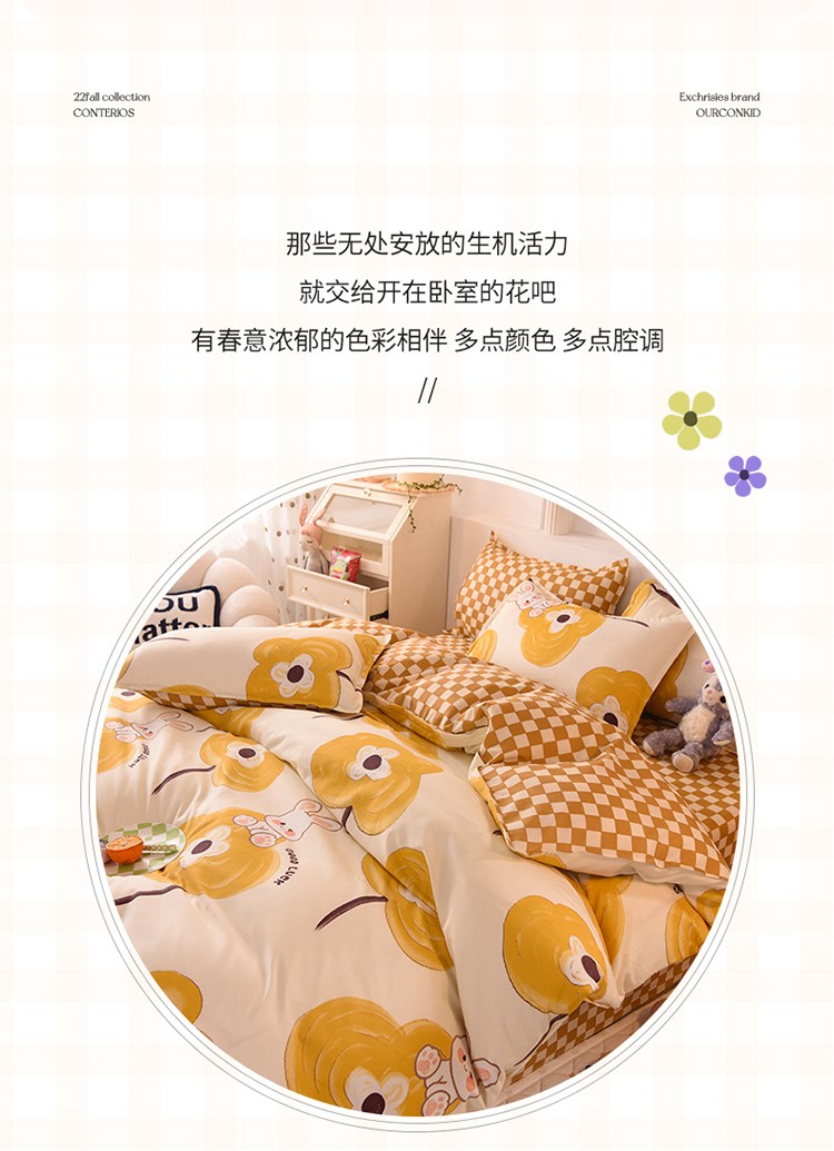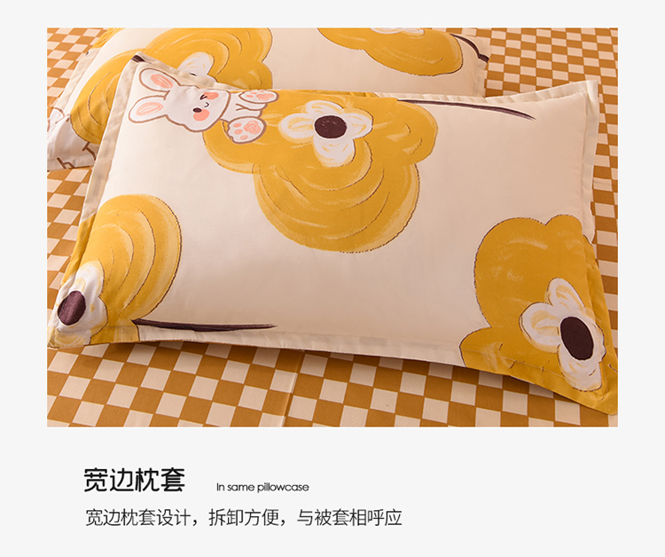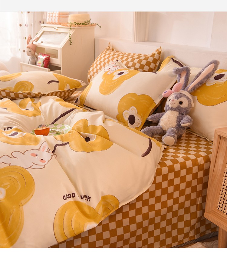 商品名称:妖妖家纺 2023新款芦荟棉AB双版印花四件套 呆萌兔