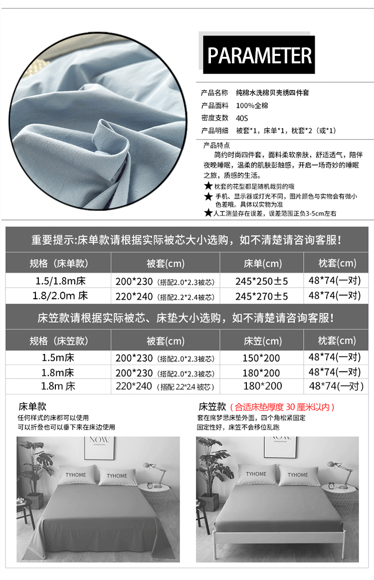 商品名称:(总)网客 2024新款全棉水洗棉贝壳绣四件套